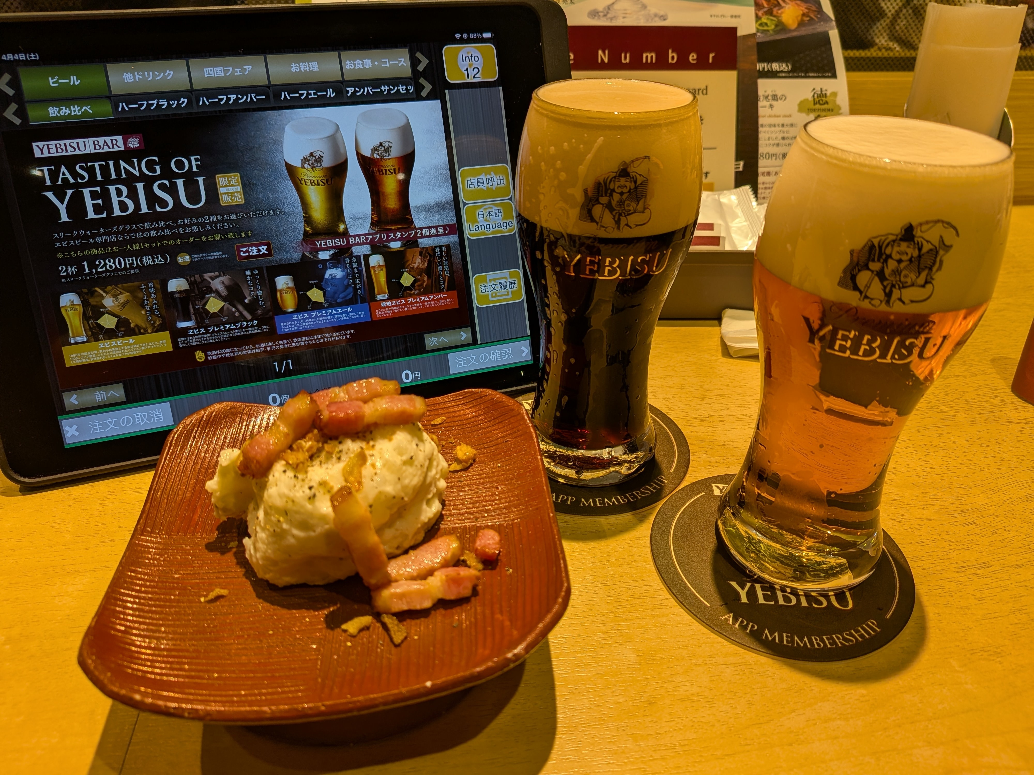 琥珀エビスプレミアムアンバーと阿波尾鶏のバンバンジーを(ラー油抜きで!舌が痺れてビールの味が分かりませんから!)