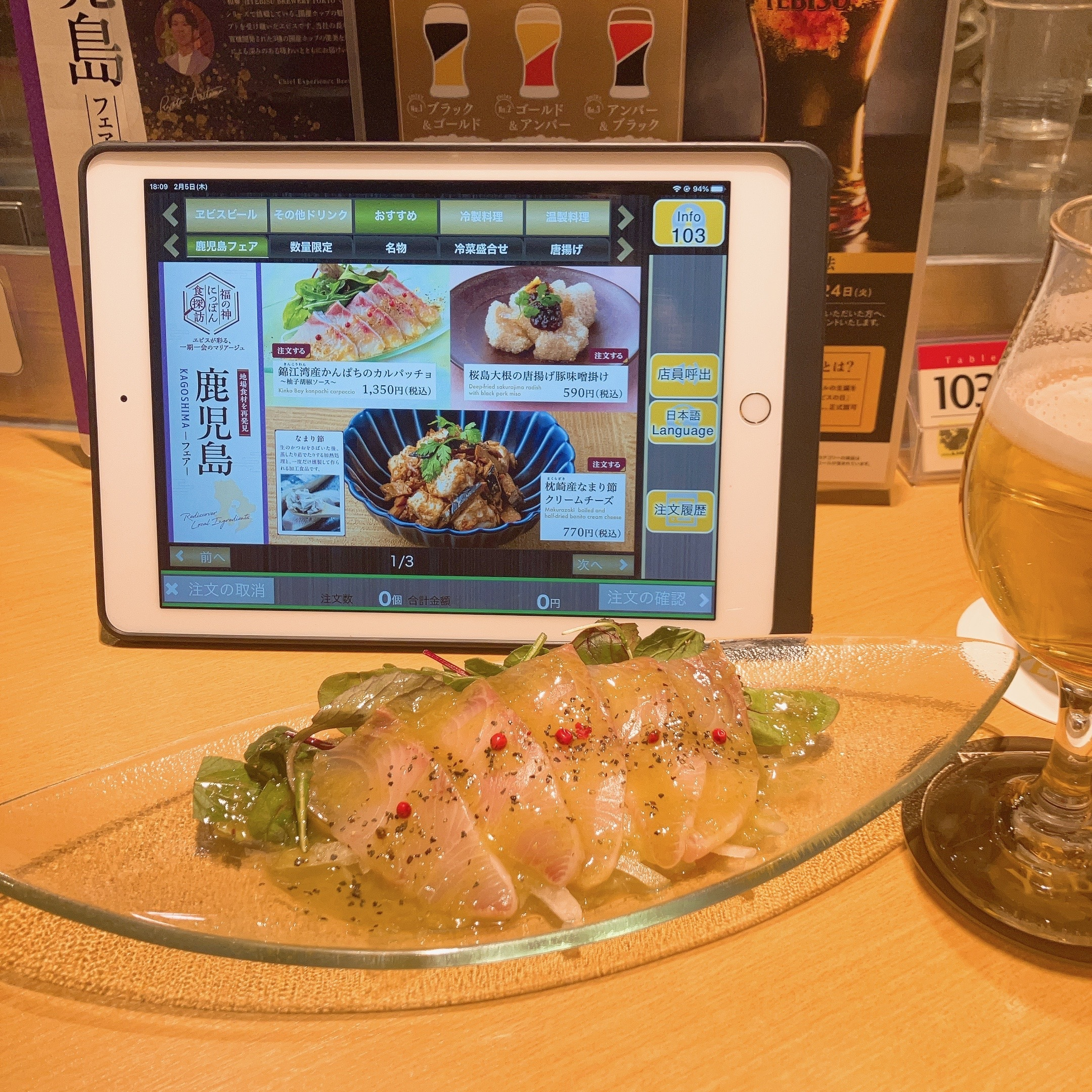 当店限定のおつまみセットと、錦江湾産かんぱちのカルパッチョをアテに頂きましたが、カルパの柚子胡椒ソースは絶品でした。