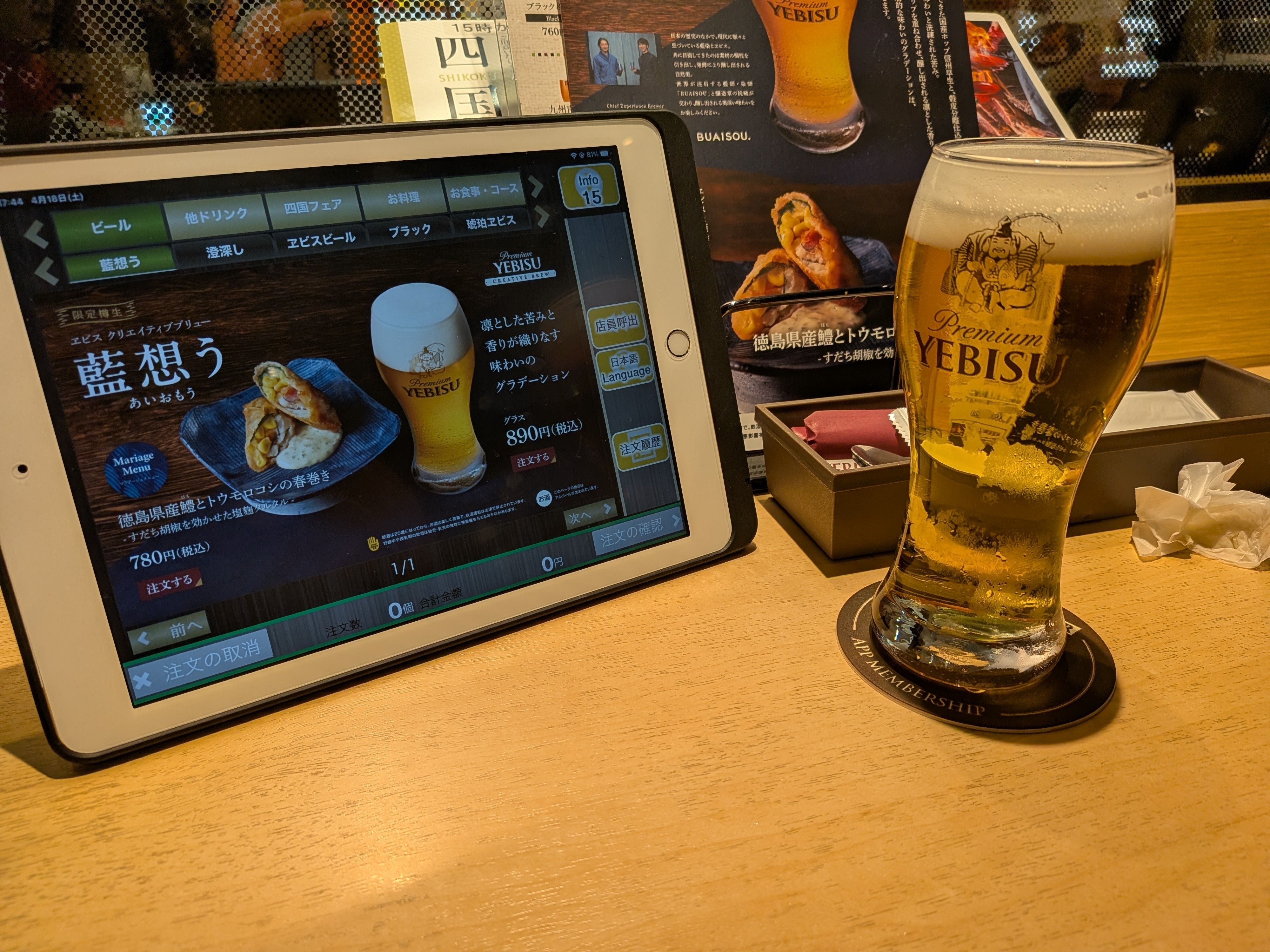 今週発売になった"藍想う"缶は飲んだが、樽生が飲みたくて仕事休みの休日、夕方午後5時過ぎ名古屋エビバサカエチカ店に来てしまった…!😅💦