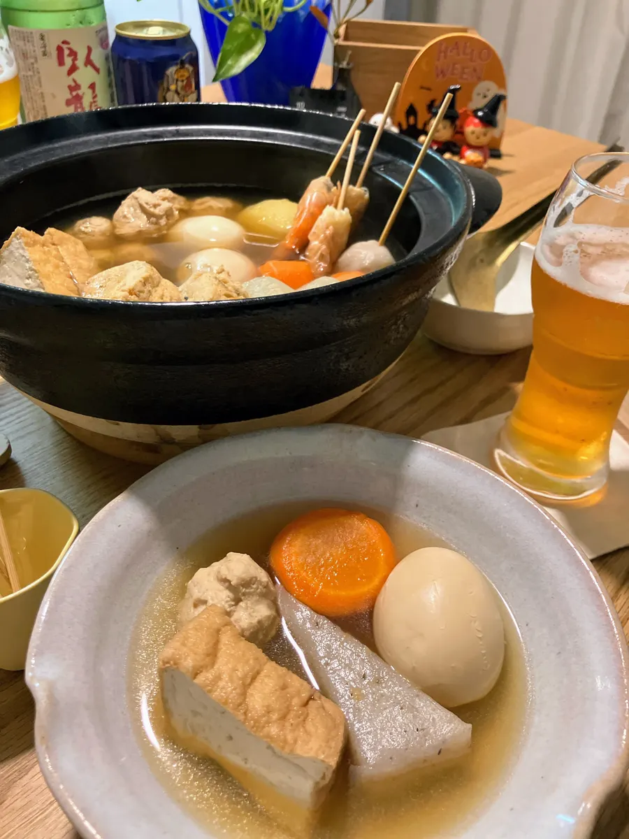 味しみしみのおでん🍢と🍻は疲れた体に染み渡りそうですね😂
