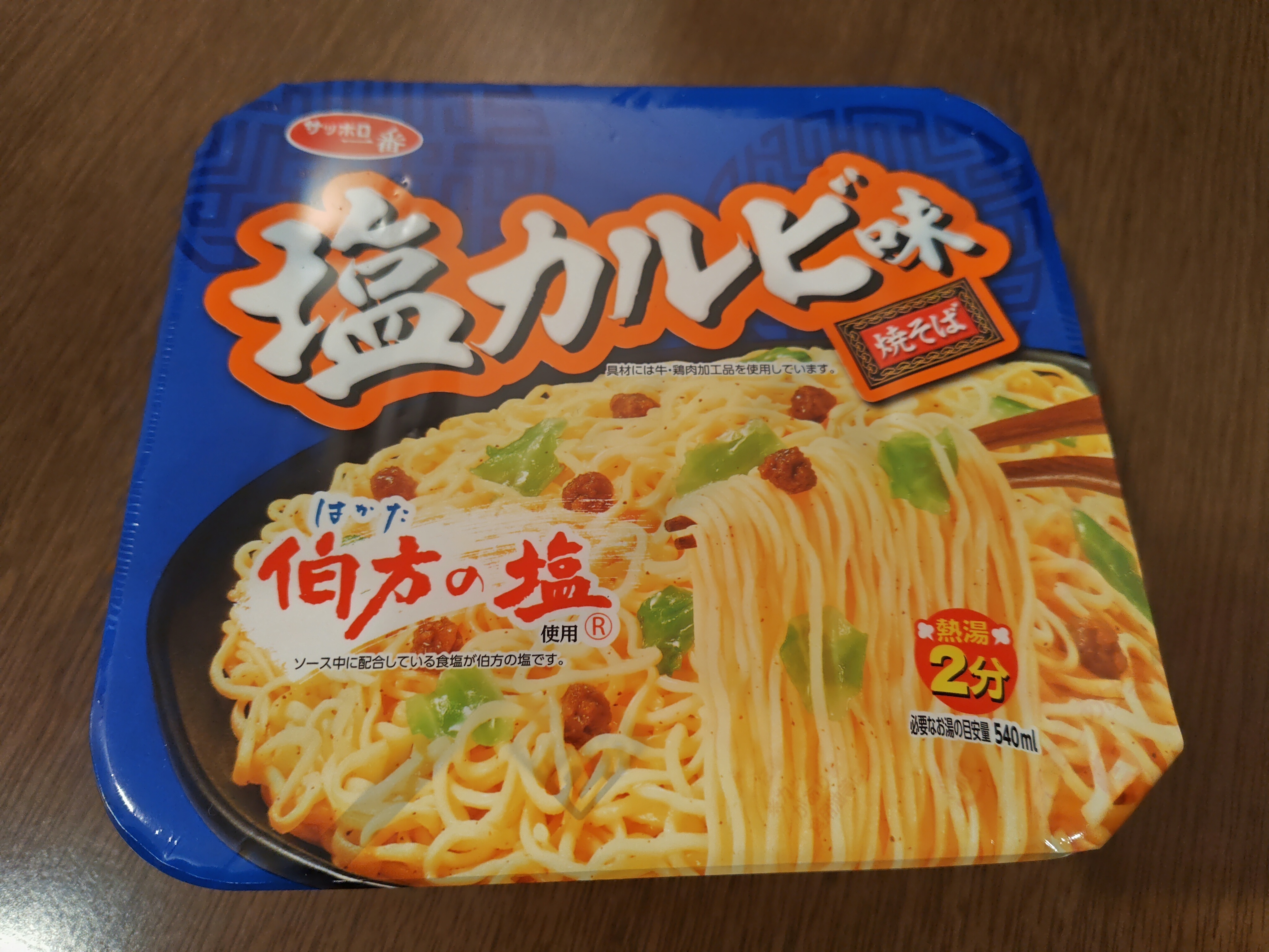 賞味期限切れ間近だったサンヨー食品の『サッポロ一番 塩カルビ味焼そば』があったので、必然的に夕食が決定してしまいました😂