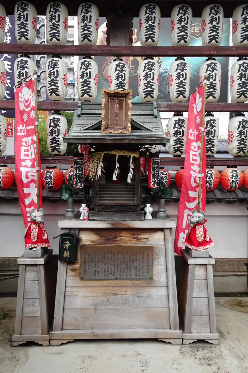 今までご紹介した境内は階段を上がりましたが、平屋の商店街の屋上にあり、お参りしやすいようにか、1階に外堂がありました。