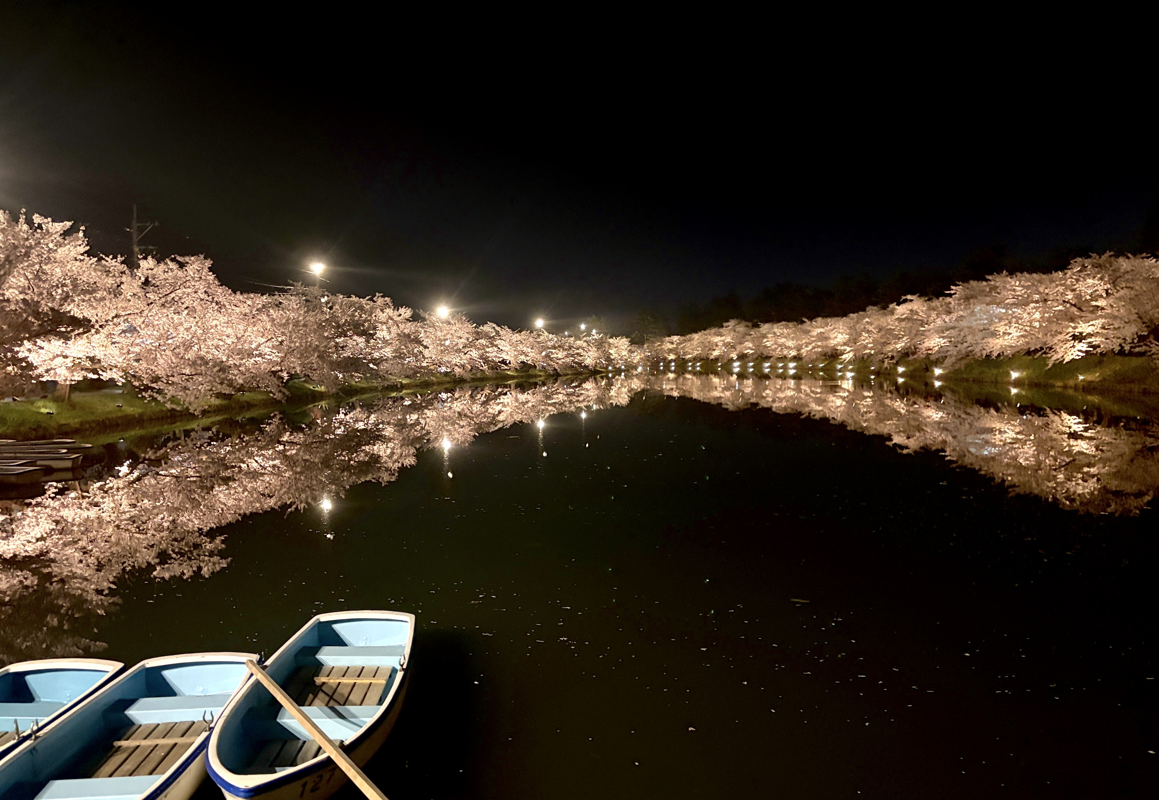 水面に映る桜が鏡のように綺麗で、一瞬脳が混乱しました😅