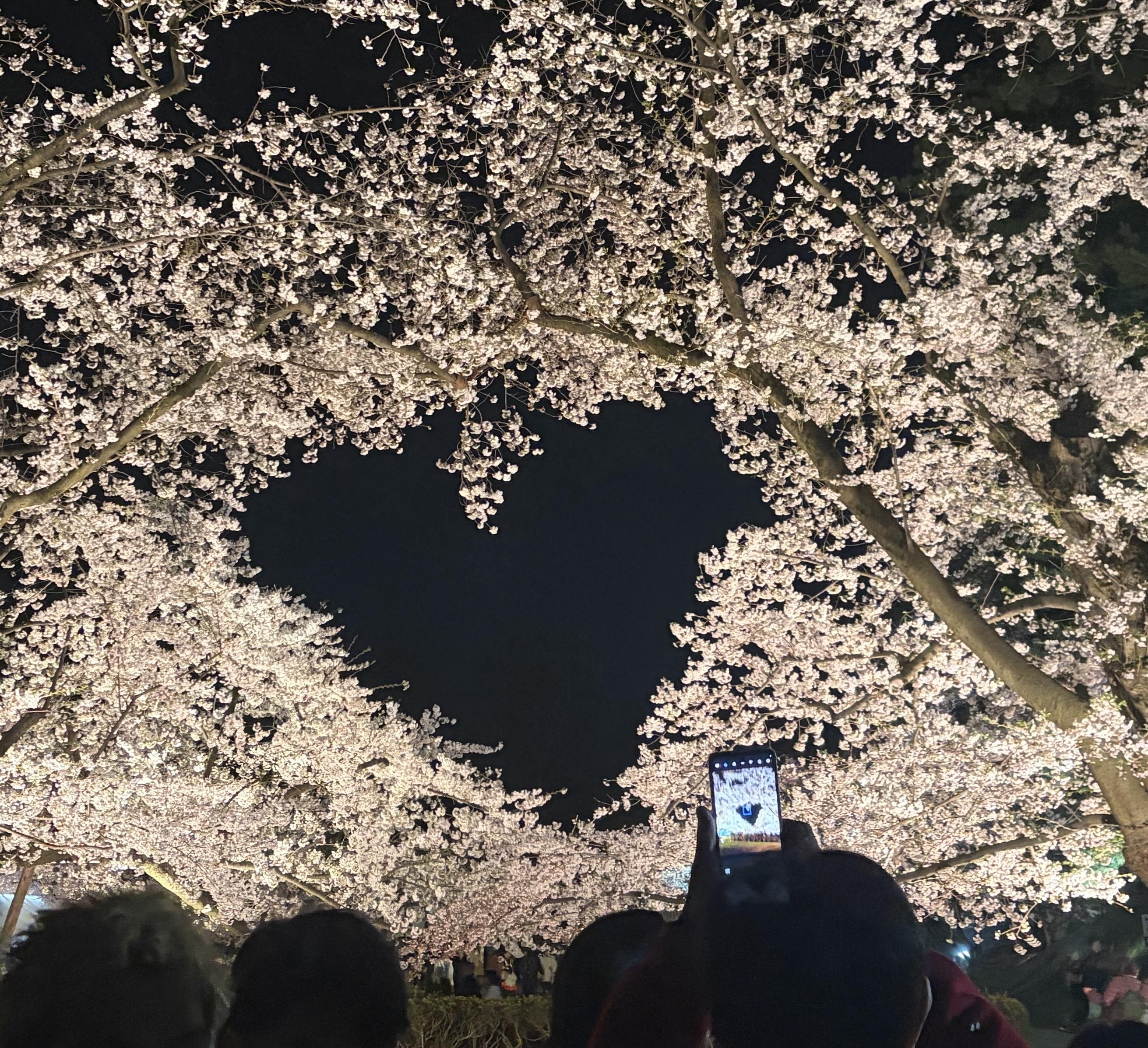 ハート💖の夜桜もいいですね🥰🌸