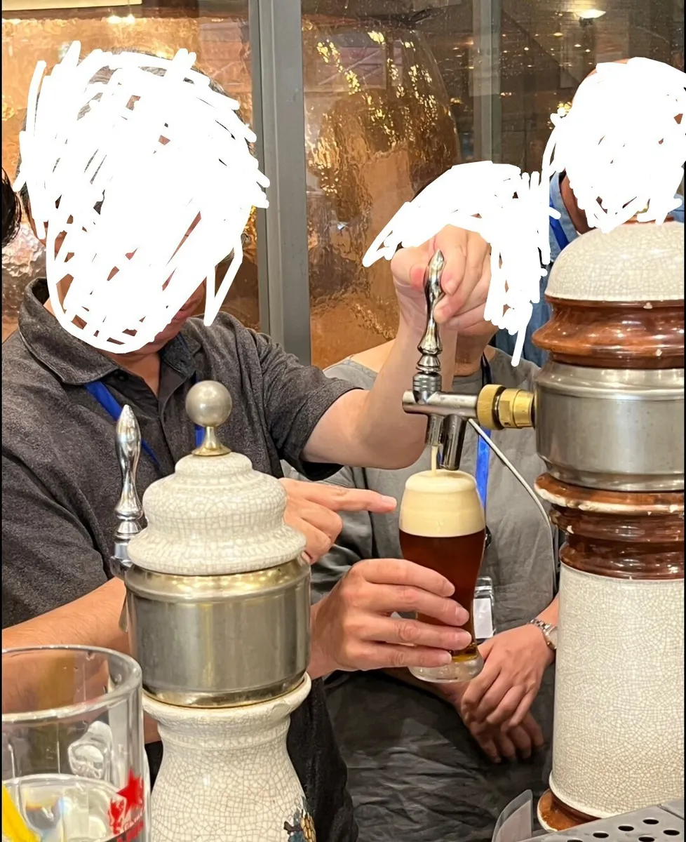 5種類のビールサーバーから好きなビールを注ぐということで恵比寿天とYEBIつよさんは迷わず琥珀をチョイス!🤭🤤