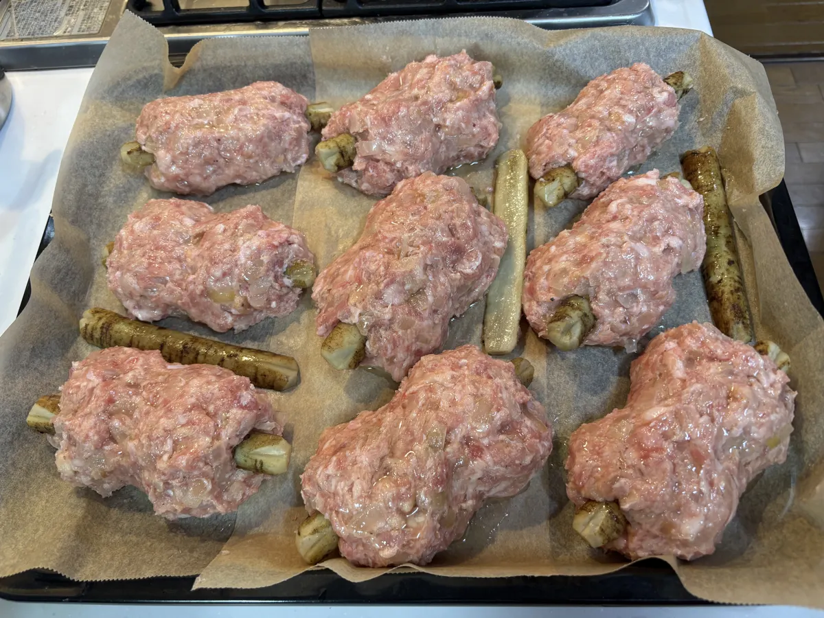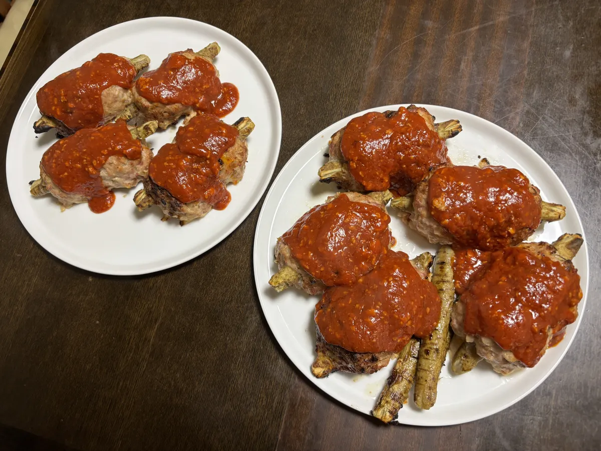 でも急に思い立って作ったもので、仕上げに巻く為の肉が無く自分的には見た目イマイチだったので、最初に考えていた肉肉しい感じにはせず肉汁を集めてハンバーグソースにしてかけてしまいました。