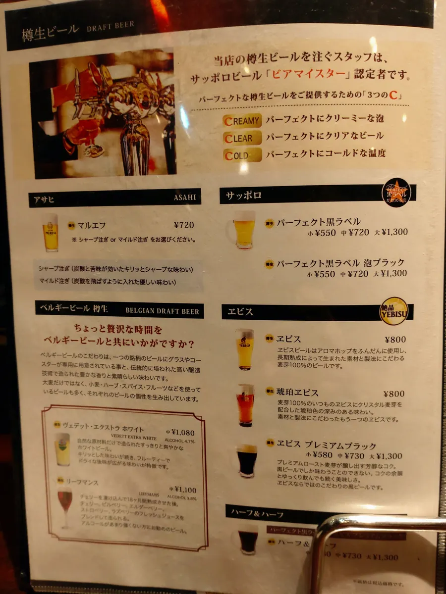 「絶品YEBISU」と「ザ・パーフェクト黒ラベル」を楽しめるお店です
