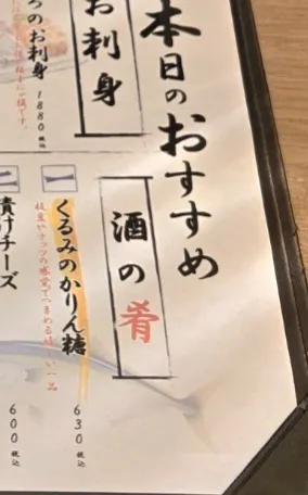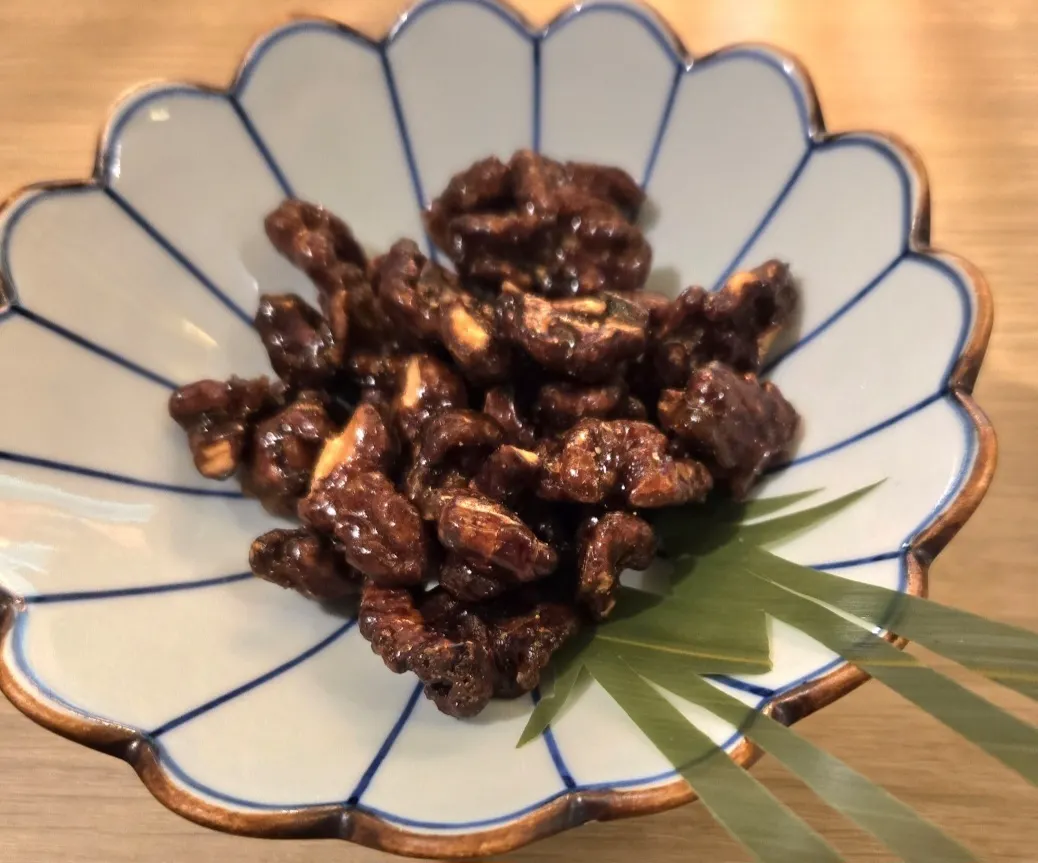 アテは本日のおすすめメニューから、くるみのかりん糖。ピーカンナッツみたいな感じでした😊