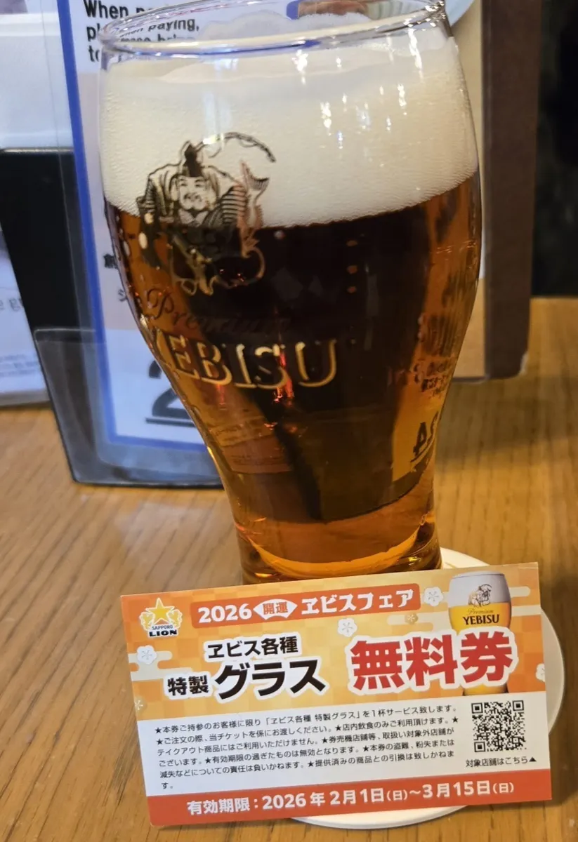 琥珀ヱビス小グラス1杯🍺無料券使用😊