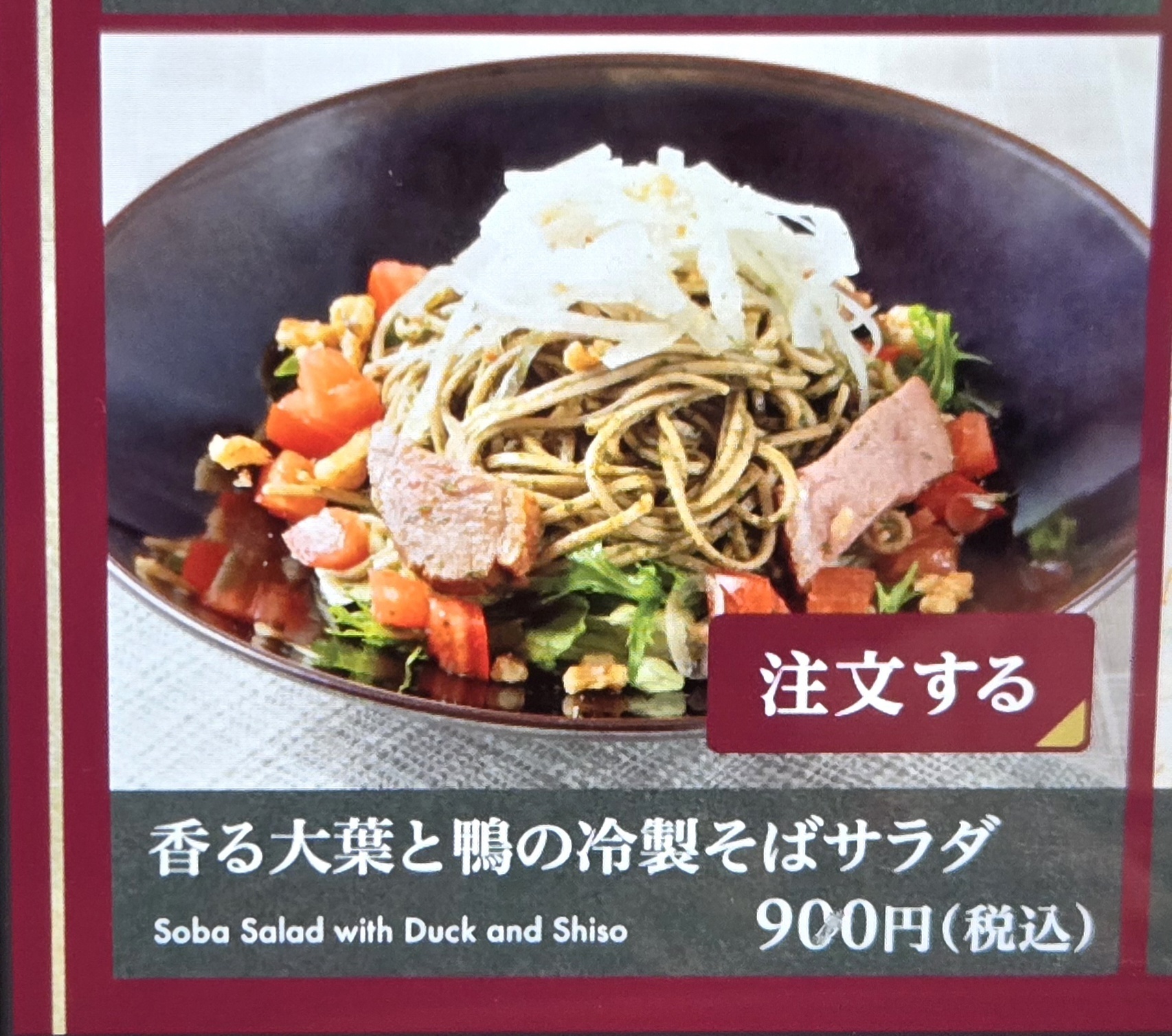 1品目は香る大葉と鴨の冷製そばサラダ🦆