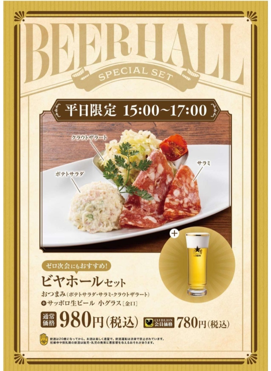 銀座ライオン渋谷マークシティ店🦁平日15時~17時限定メニュー✨🍻🎶
