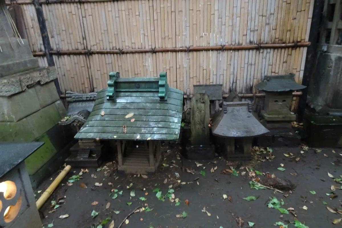 その左横には、どこからか回収したのか、祠の類が乱雑に並べられていました。