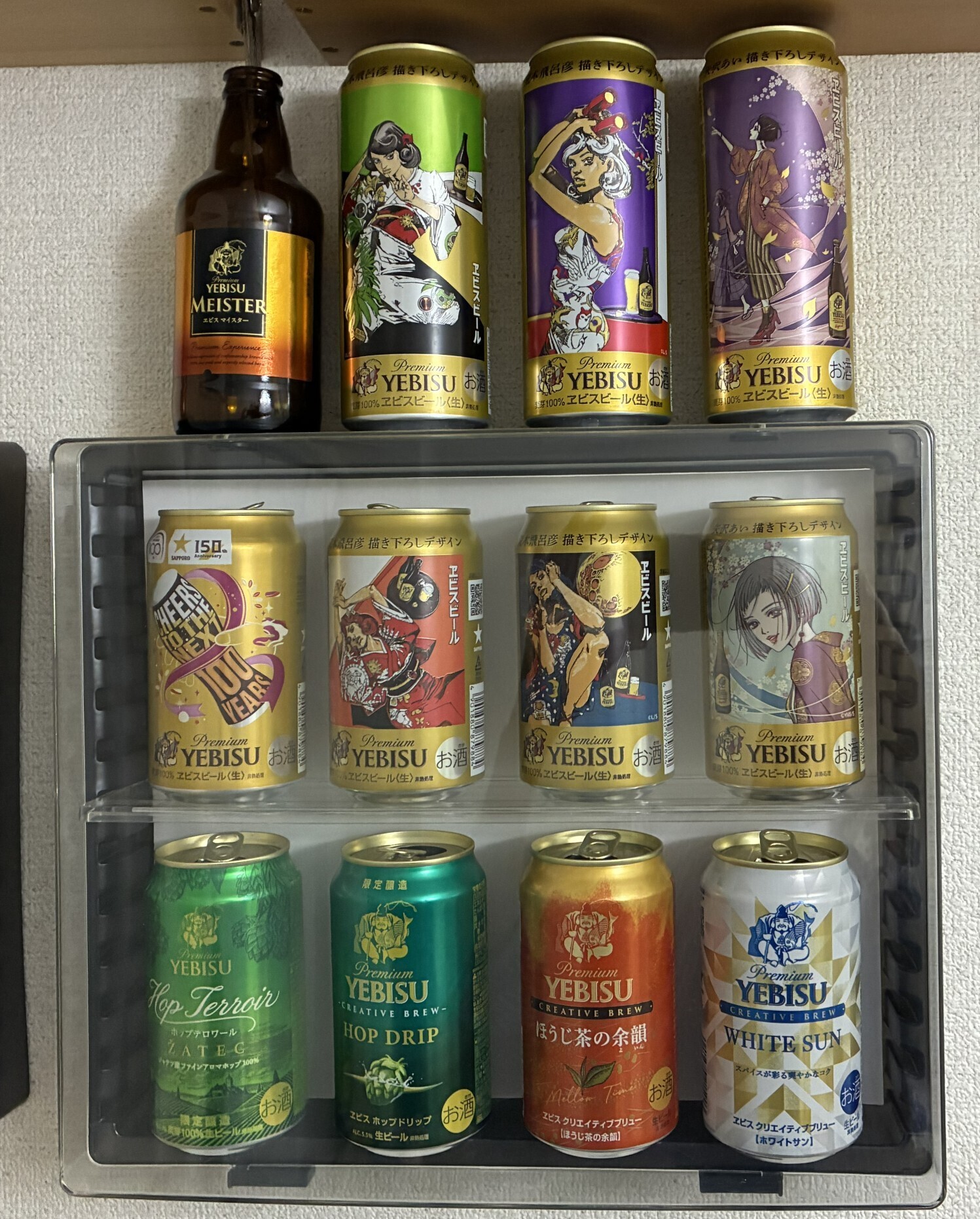 トップ > ヱビスフォト > ヱビス > 「藍想う」追加 ホンロン 2026/04/15 17:53 「藍想う」追加 藍想うを空き缶コレクションに加えました。 ヱビスだけで随分と場所を占有してます。 今回は全景だけでなくケース毎の写真も掲載させてください。 (ライティングがしょぼくてすみません。) Creative Brewのケース セブン限定のCreative Brewと裏デザイン缶 マイスターの瓶に刺してあるのは転倒防止治具、のつもり。他のは空き缶で軽いのでそのまま。 左上のはかつての色々。 その下は福ヱビスと裏デザイン缶。 藍想う いいね 共有する 共有する X facebook LINE リンクをコピー コメントする 7 件の返信 (新着順) ミュートしたユーザーの投稿です。 投稿を表示 飛ばないトンビ 2026/04/16 08:28 スゴい! まさにTheエビスビール記念館です いいね 返信する ミュートしたユーザーの投稿です。 投稿を表示 ホンロン 2026/04/16 13:20 ありがとうございます。 最近のばかりなんですけどね。 (一番古いのが130周年記念ラッキー缶) いいね 返信する ミュートしたユーザーの投稿です。 投稿を表示 とらひっぽ 2026/04/15 23:59 ホンロン さま🍻 美しい光景です🤭 その当時の感動や美味しさも一緒に記憶 😌 素晴らしいです👏👏👏 いいね 返信する ミュートしたユーザーの投稿です。 投稿を表示 ホンロン 2026/04/16 05:19 ありがとうございます。 美味しさは、、記憶が薄れているのも多いですが、 もう一回飲みたいなと思うのは幾つかあります。 いいね 返信する ミュートしたユーザーの投稿です。 投稿を表示 Ray 2026/04/15 22:43 おぉー。セブンで売られてたプレミアムセゾン、めっちゃ好きでした😆 いいね 返信する ミュートしたユーザーの投稿です。 投稿を表示 ホンロン 2026/04/15 23:04 プレミアムセゾンの缶の色、何とも言えない青がけっこう好きです。 いいね 返信する ミュートしたユーザーの投稿です。 投稿を表示 まいまい3 2026/04/15 21:57 コレクションがまた増えましたね(. ❛ ᴗ ❛.)すごいです!! いいね 返信する ミュートしたユーザーの投稿です。 投稿を表示 ホンロン 2026/04/15 23:02 ありがとうございます。そろそろ限界が近いですが。 いいね 返信する ミュートしたユーザーの投稿です。 投稿を表示 春告花 2026/04/15 19:59 ホンロンさん 壮観ですね✨️✨️ ほうじ茶の余韻とWHITE SUNはまだ1本ずつ在庫してますが セブン限定でしたか…忘れてました😅 琥珀ヱビス懐かしい😍 復活してもらえないですかね〜♡ いいね 返信する ミュートしたユーザーの投稿です。 投稿を表示 ホンロン 2026/04/15 22:58 琥珀、ヱビスバーかライオンでしか飲めなくなって久しいですね。 マイスターと違って、まだ飲めるだけ良いのかも知れませんが。 いいね 返信する ミュートしたユーザーの投稿です。 投稿を表示 ちゃちゃるー 2026/04/15 18:52 次のクリエイティブブリュー出たらどうします?🤔 いいね 返信する ミュートしたユーザーの投稿です。 投稿を表示 ホンロン 2026/04/15 19:03 下のケース、ぎちぎちで5本並ぶのでまだ4本分余地ありますが、 配置に悩みます。 いいね 返信する ミュートしたユーザーの投稿です。 投稿を表示 もとをば 2026/04/15 18:05 素晴らしいコレクション❗ 美しいなあ~🎵🍺🍺🍺🍺🍺😋👍 いいね 返信する ミュートしたユーザーの投稿です。 投稿を表示 ホンロン 2026/04/15 18:44 ありがとうございます。そろそろ場所的に限界。 いいね 返信する