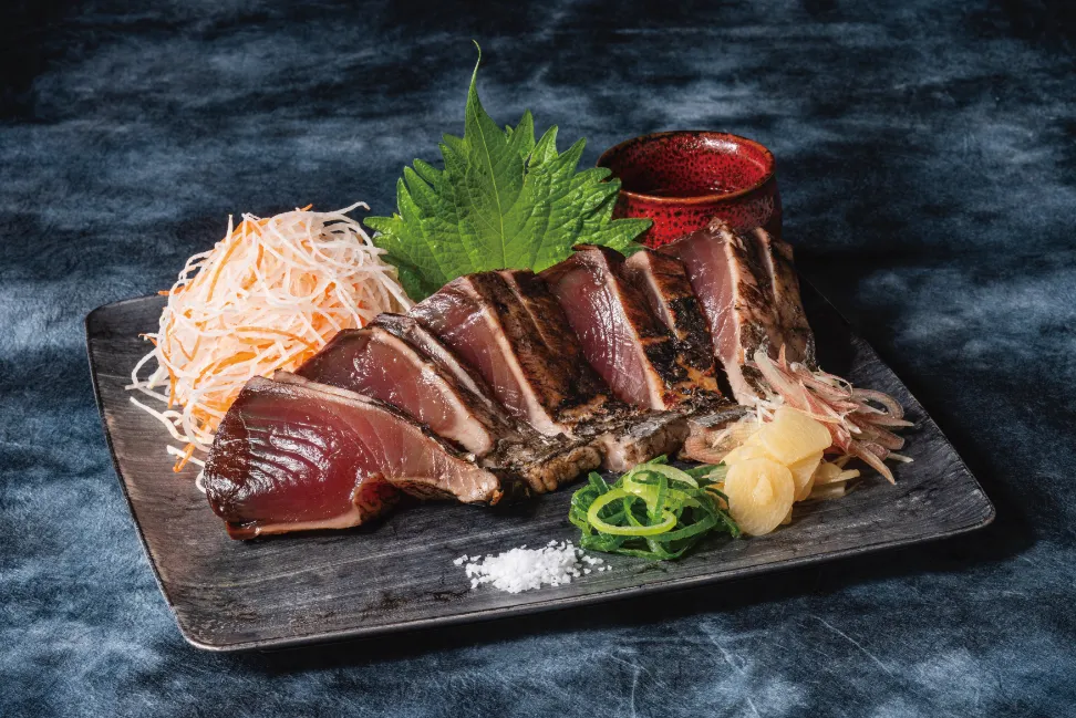 四万十川流域の米藁を使用し、職人が一節一節に心を込めて完全に藁焼きのみで仕上げた、土佐伝統製法によるカツオの藁焼き。一昨年の高知フェアでも登場し当時大好評を博した人気メニューの再販となります。覚えている方はリピート必須では?♪