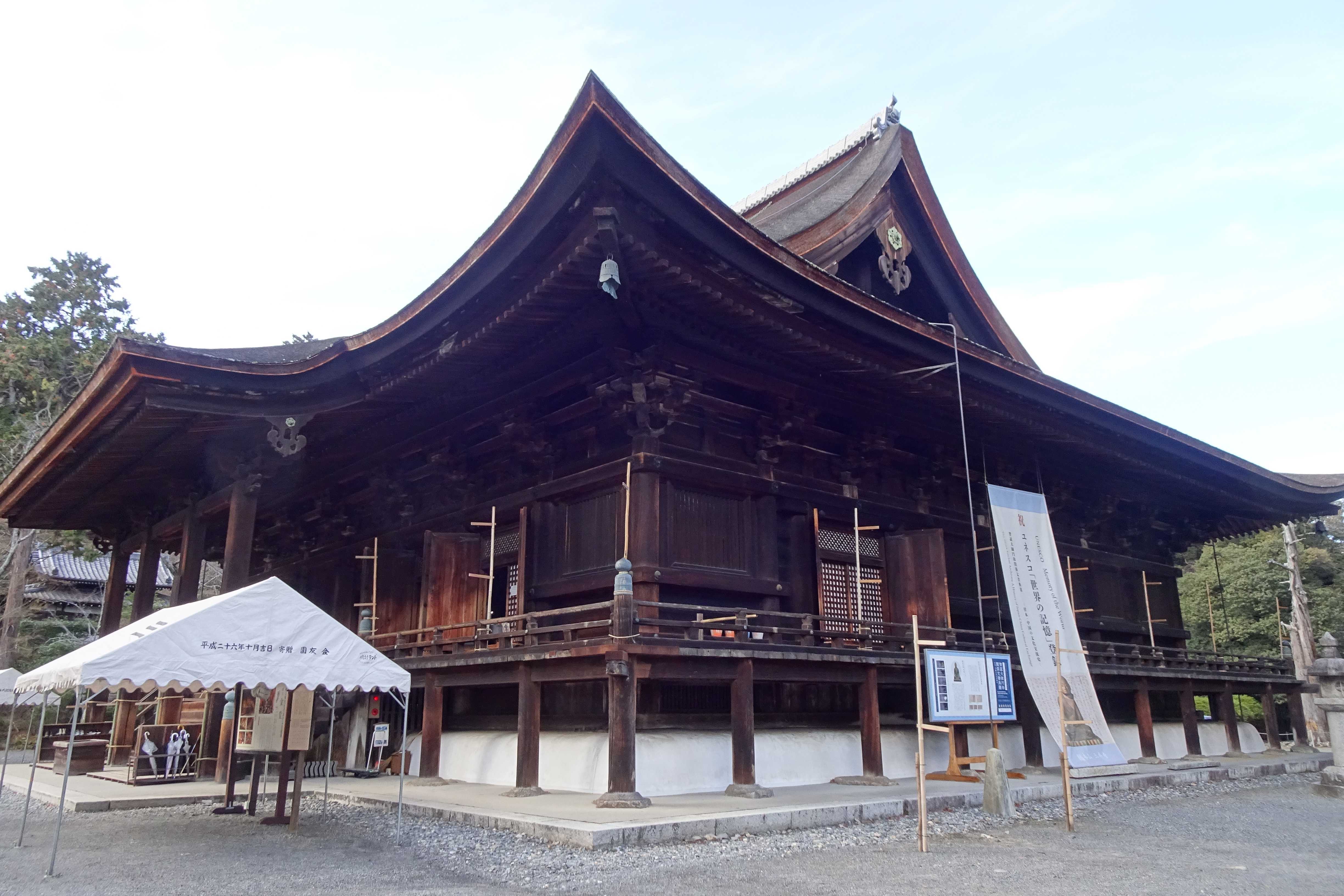 階段の先に見えるのは、金堂の横っ腹です。