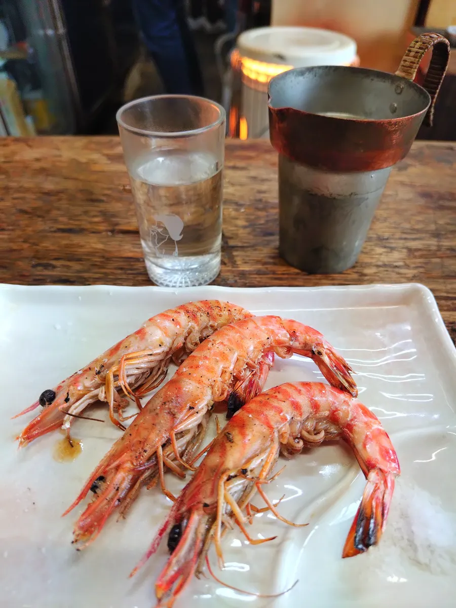 車海老の塩焼きの香ばしさと黒ラベルの組合せは最高ですね🎵