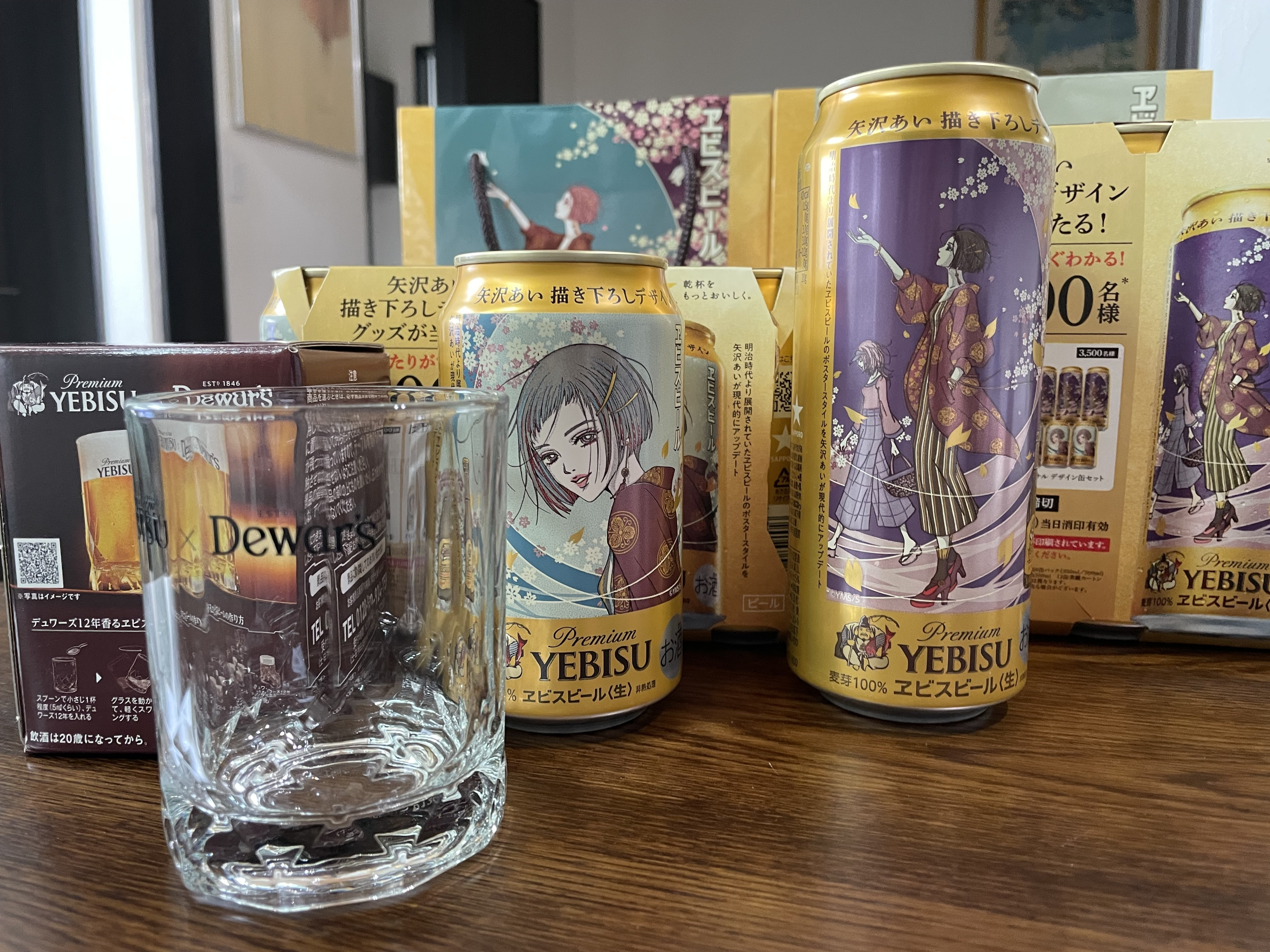 「Dewar’sコラボグラス」が「矢沢あい描き下ろしデザイン缶」 350ml×6缶についてました。