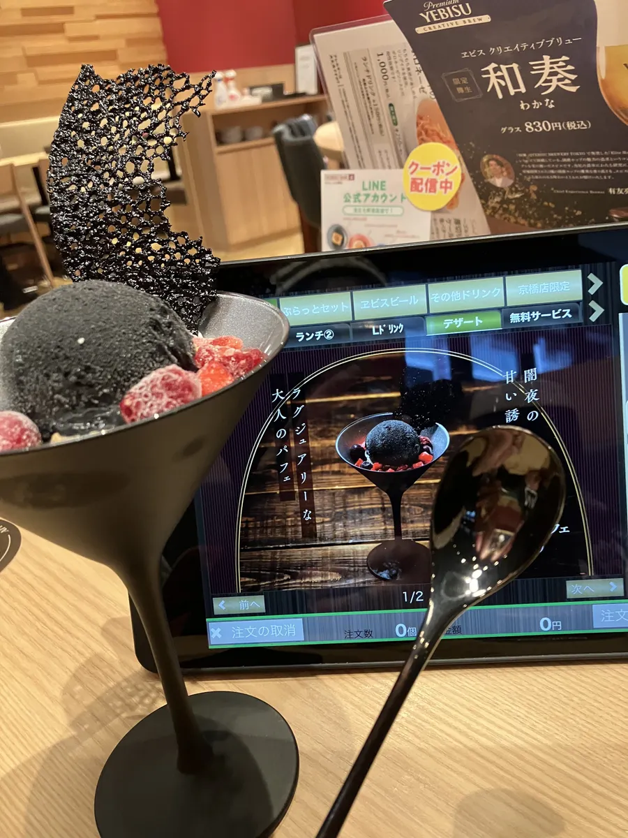 そして新しいデザート「大人の黒いパフェ」スプーンも黒でカッコイイです。