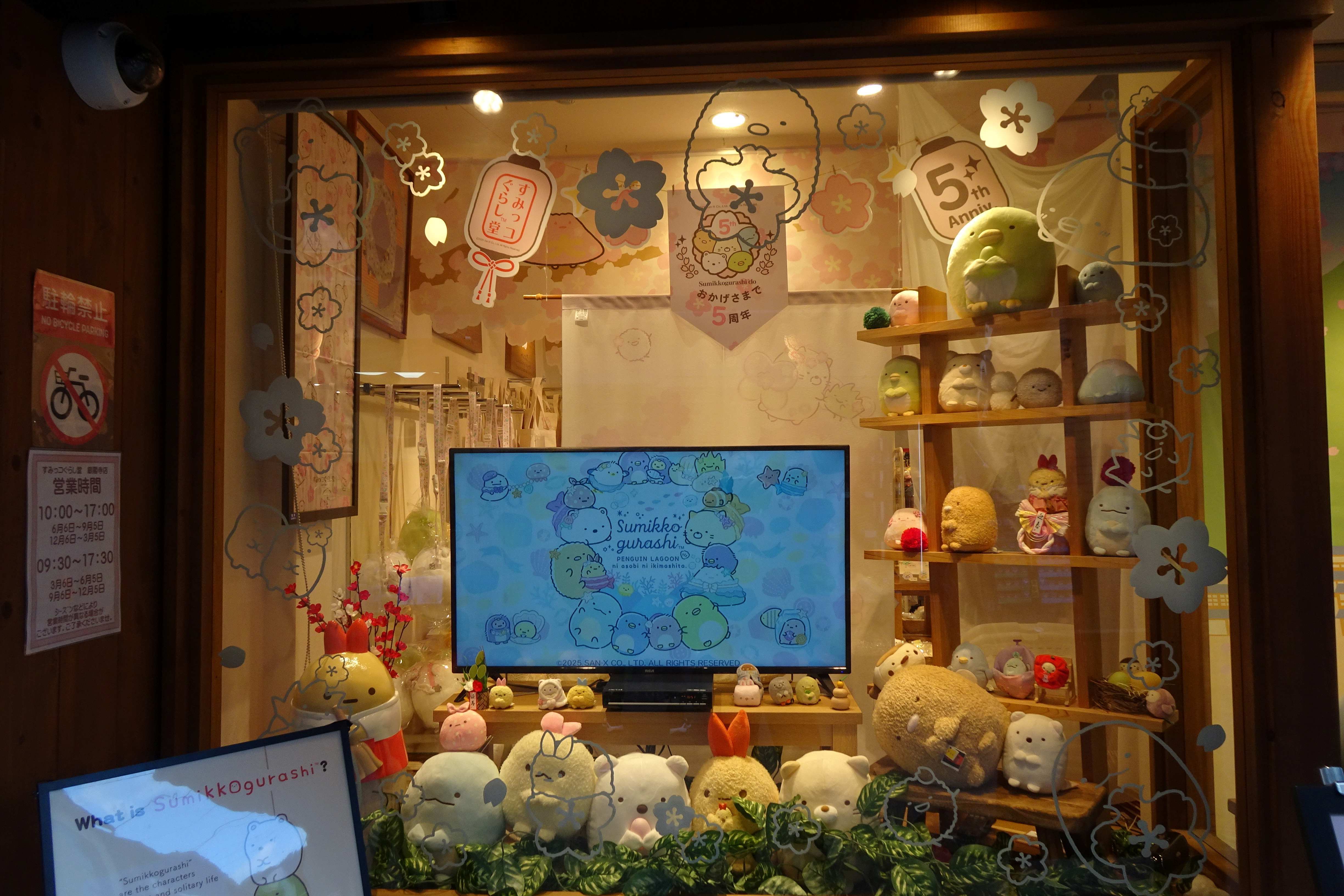 トップ > ヱビスフォト > 季節の写真 > すみっコぐらし堂 なおなおっぴ 2026/04/02 00:23 すみっコぐらし堂 慈照寺(通称:銀閣寺)の参道に、すみっコぐらしのショップがあり、いい感じでしたので、許可を得て店内を撮影しました。 インバウンド向けの看板もあります。 ショーウィンドウでは隅っこで暮らしていませんが、 店内では、一応左の端に固まっています。 春でもないのに、桜の花が至る所に。 何かほっこりします。 店内には神社もありました。 神社の左には、2枚上の写真のものと同じ画が。 そして神社の右には、京都を代表するものが。 五重塔が四重なのは、ご愛敬ですね。 これが本当のすみっコぐらしです。 いいね 共有する 共有する X facebook LINE リンクをコピー コメントする 1 件の返信 (新着順) ミュートしたユーザーの投稿です。 投稿を表示 legacy 2026/04/02 17:28 すいません、良さが分かりません、へー😎👍。 いいね 返信する ミュートしたユーザーの投稿です。 投稿を表示 なおなおっぴ 2026/04/02 22:04 legacyさん こういうのは趣味の世界ですからね。 いいね 返信する