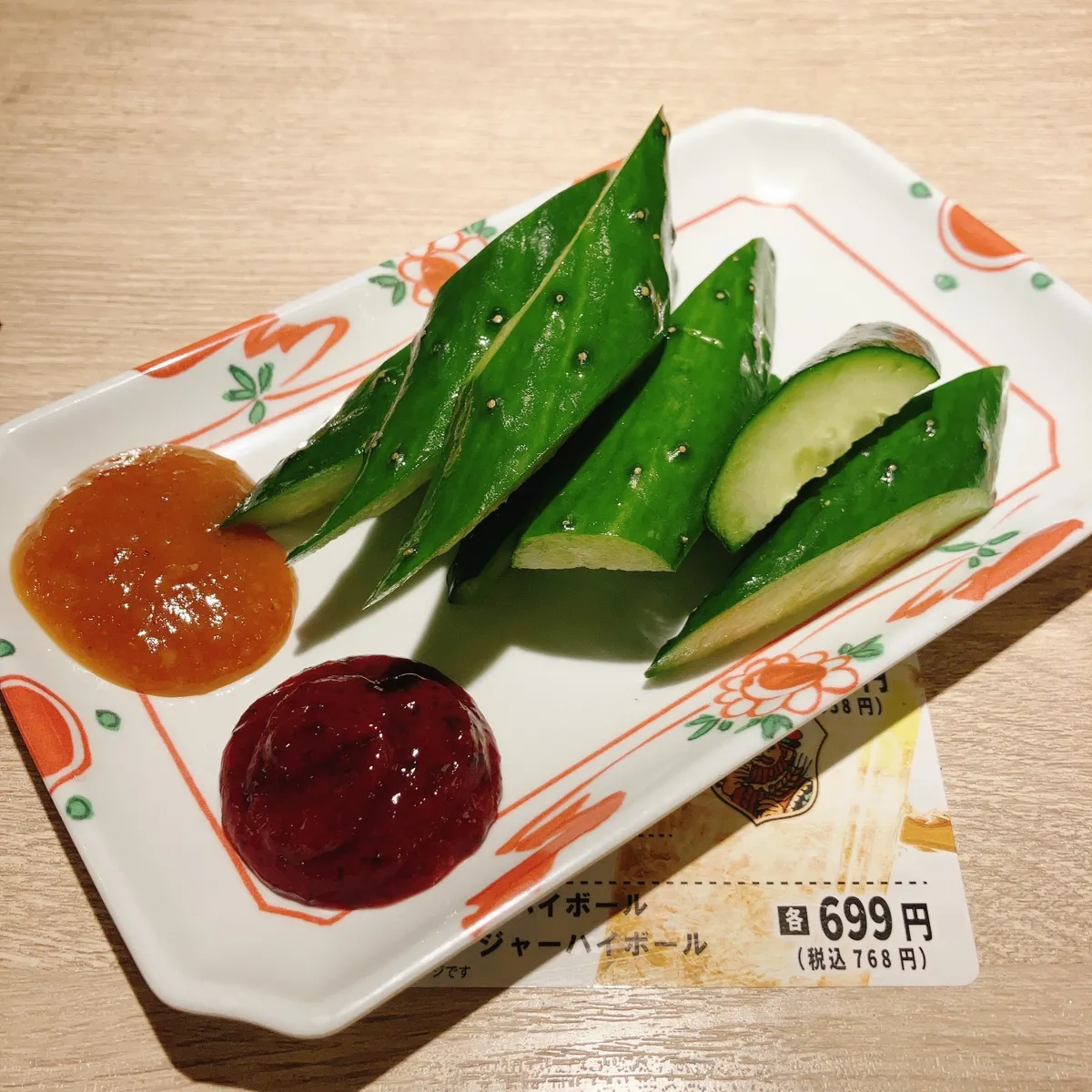 アテはもろキュウと梅キュウ、シンプルでいいね!初カウンターヤー‼️🤣🍺