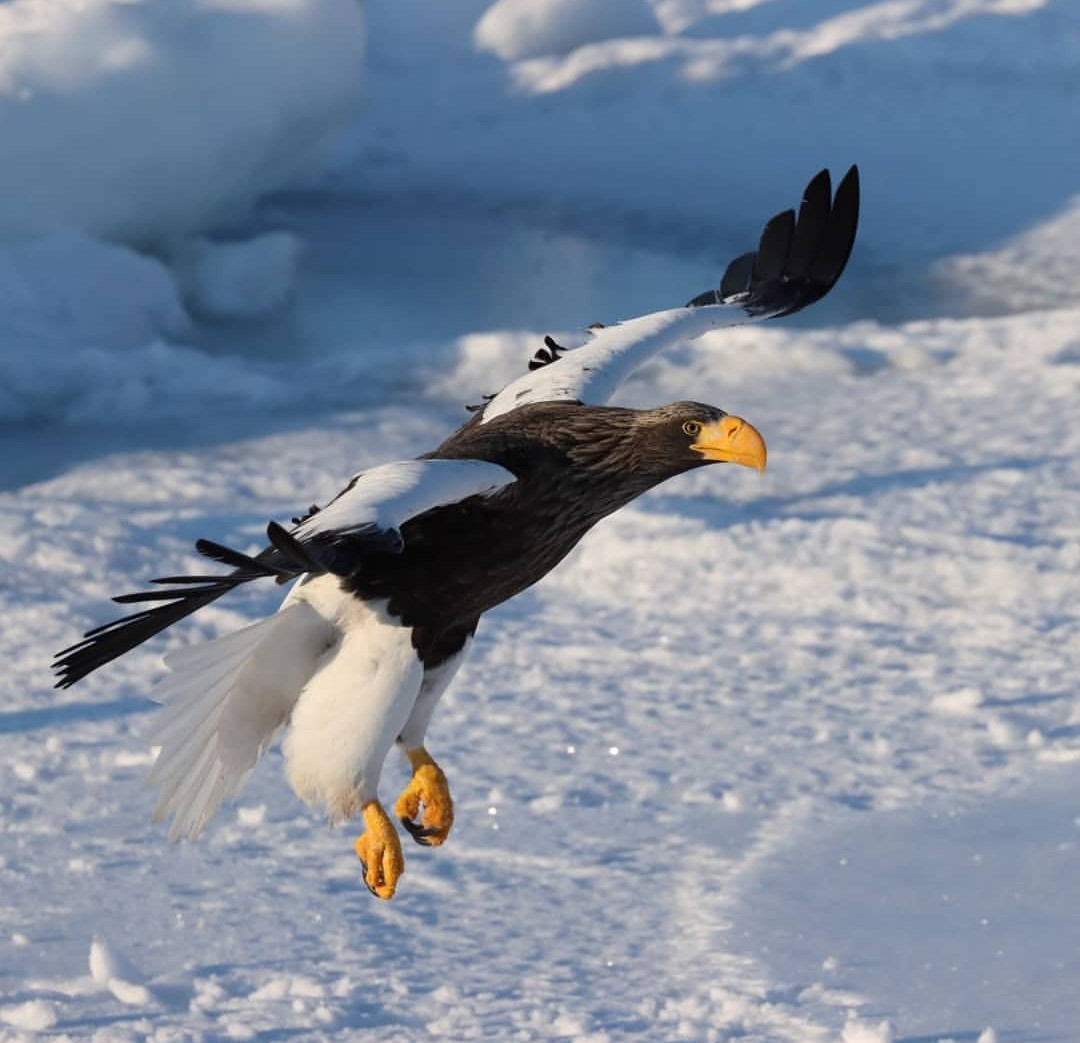 キリッとした寒さの真っ白な世界に溶け込んだオオワシは、さぞ大きかったことでしょう😌
