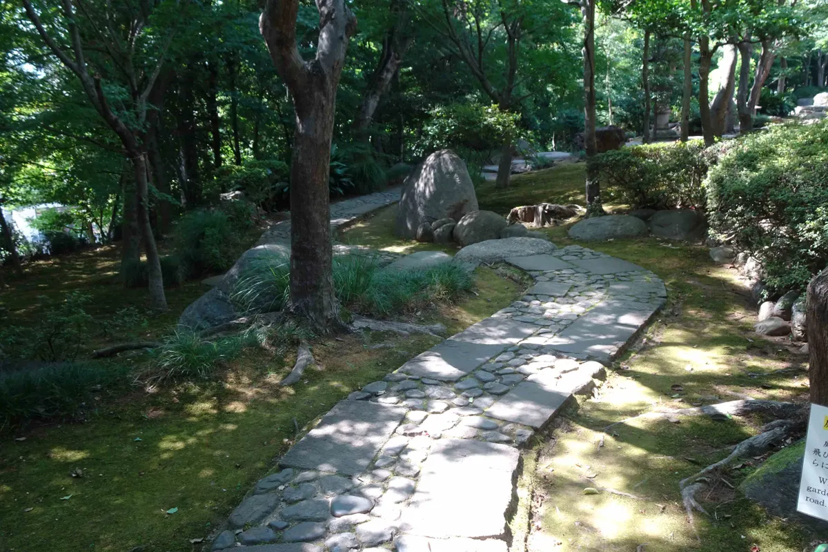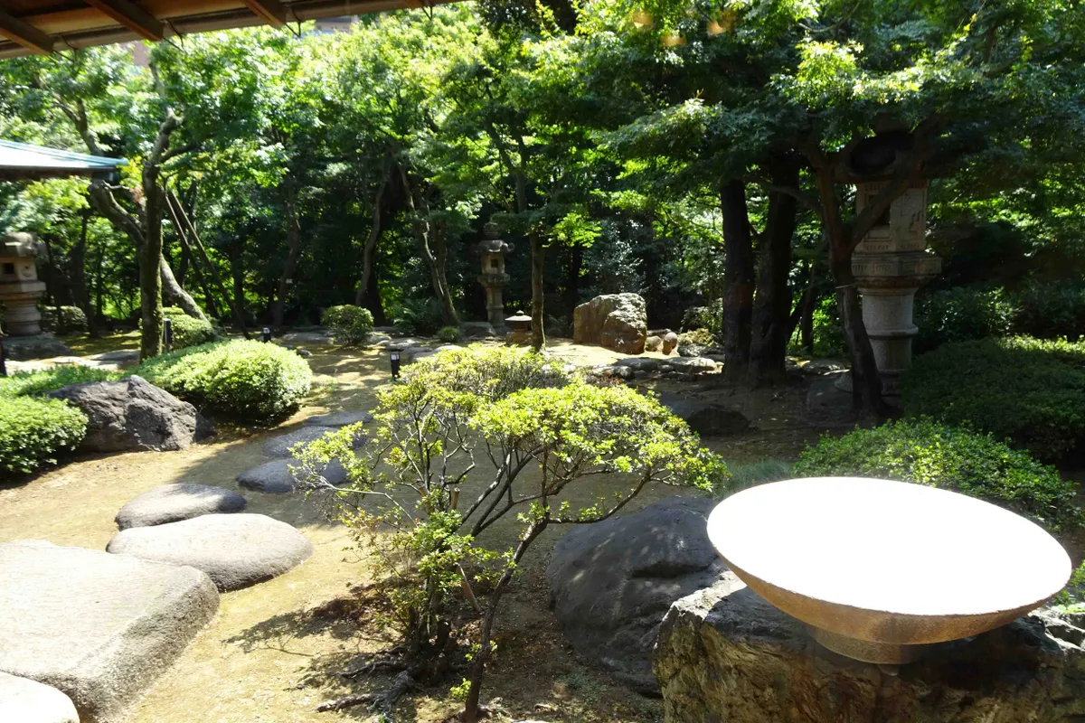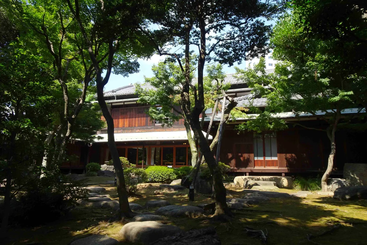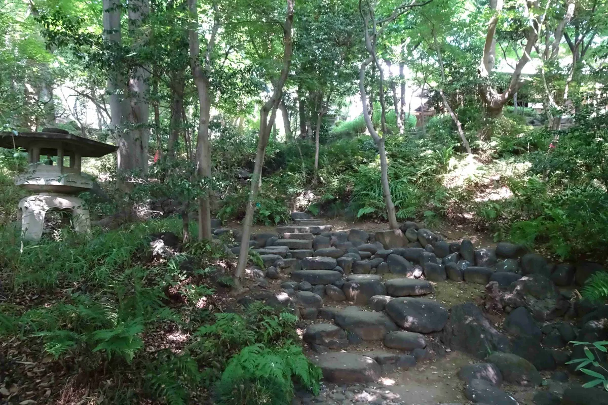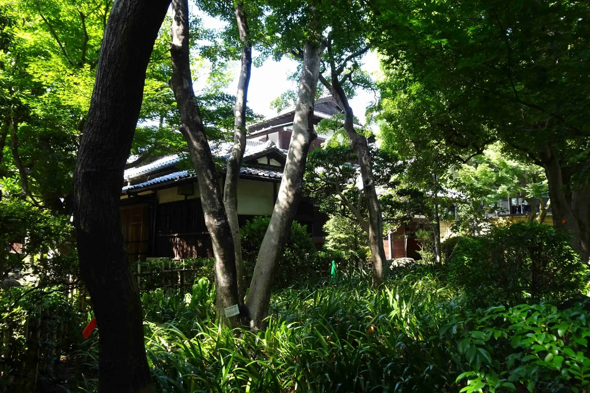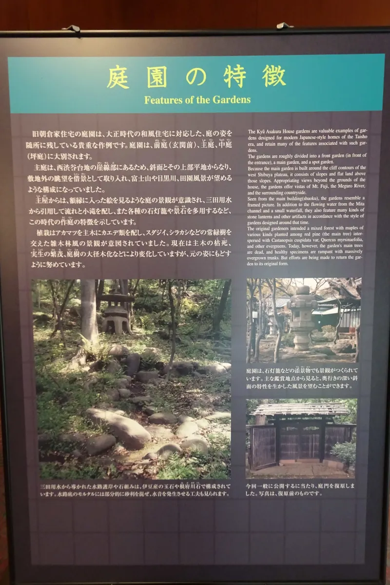 旧朝倉家住宅は、台地から目黒川に落ち込む斜面を利用した回遊式庭園があります。