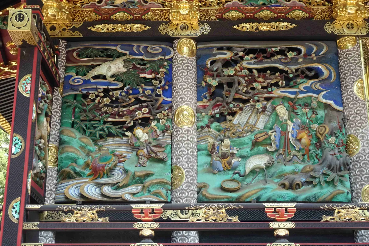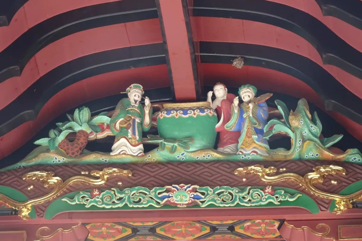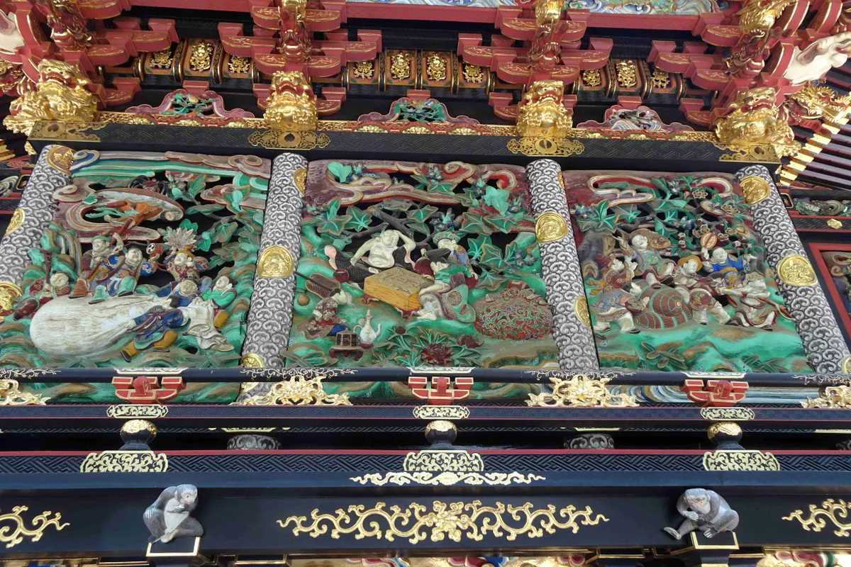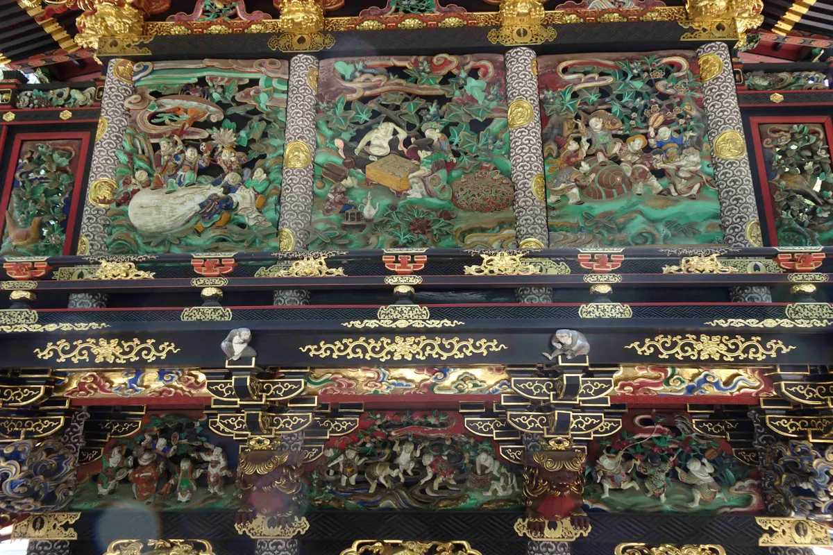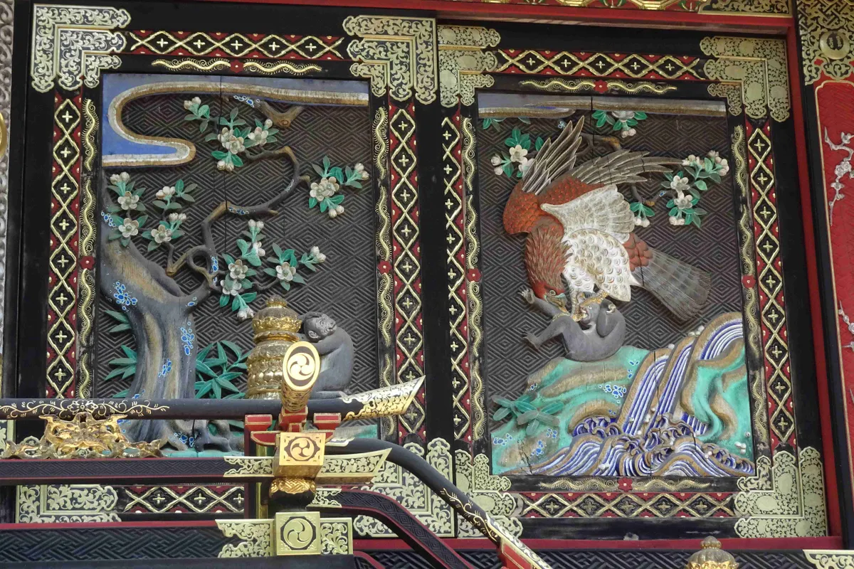 軒下のこの彫刻は左、奥、右の3面でそれぞれ意味があります。