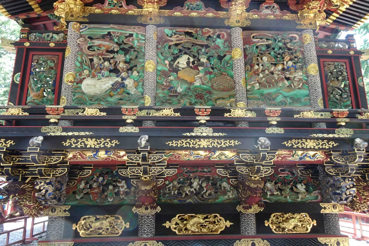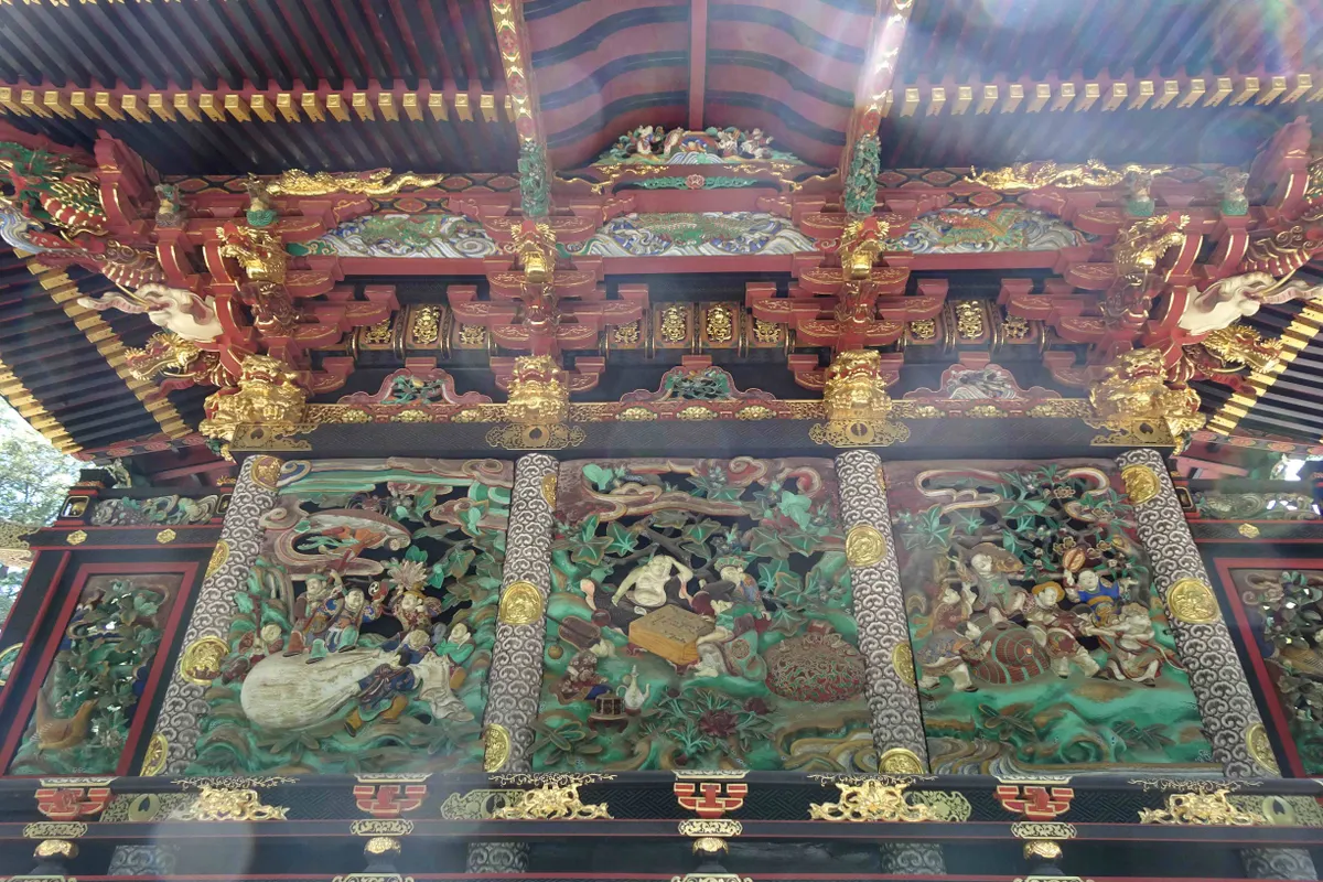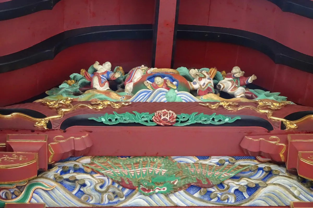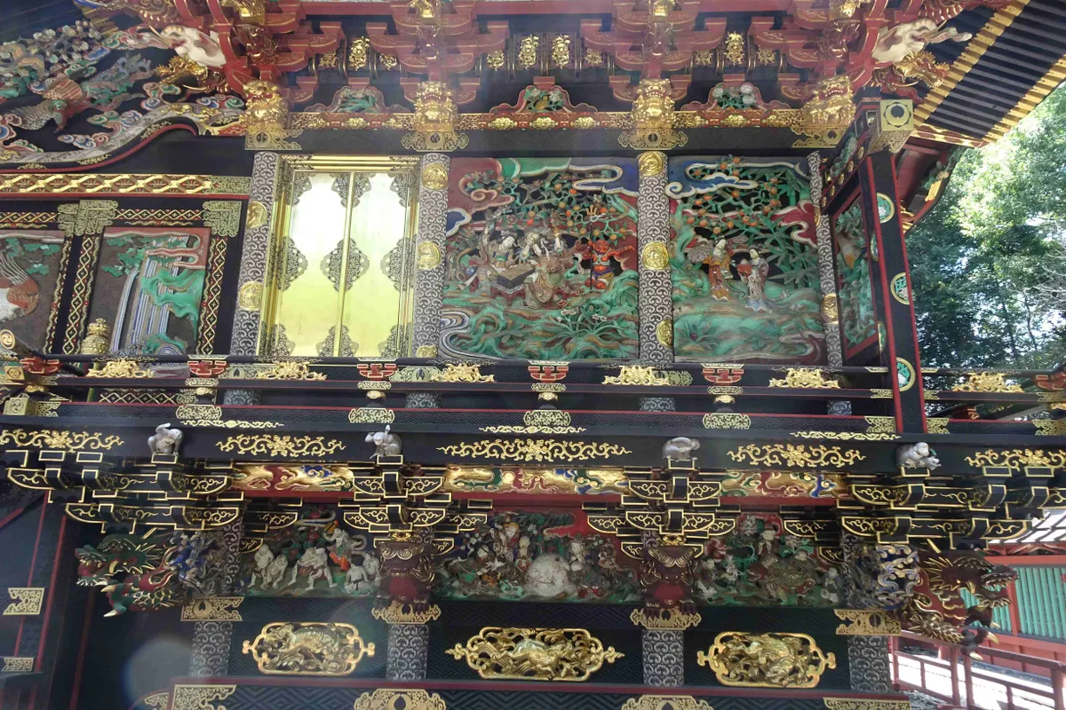 軒下のこの彫刻は左、奥、右の3面でそれぞれ意味があります。