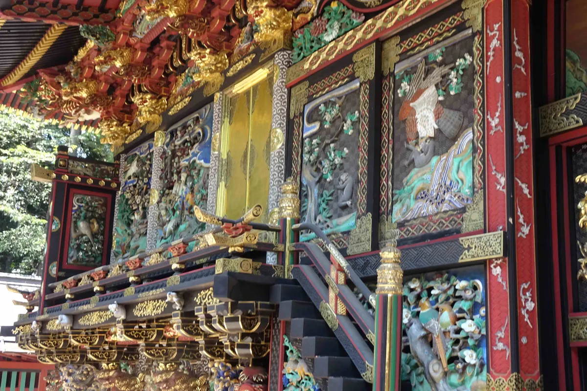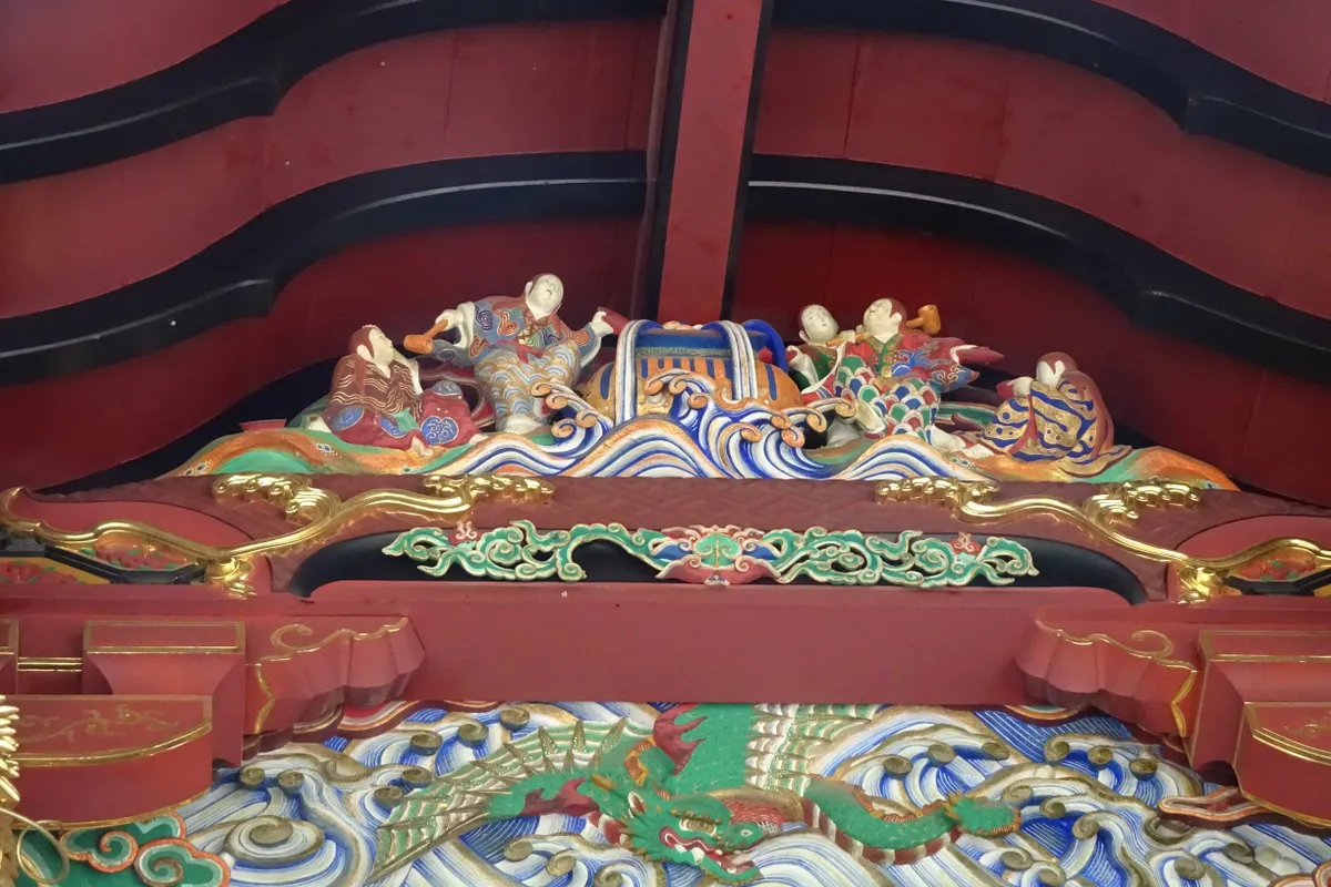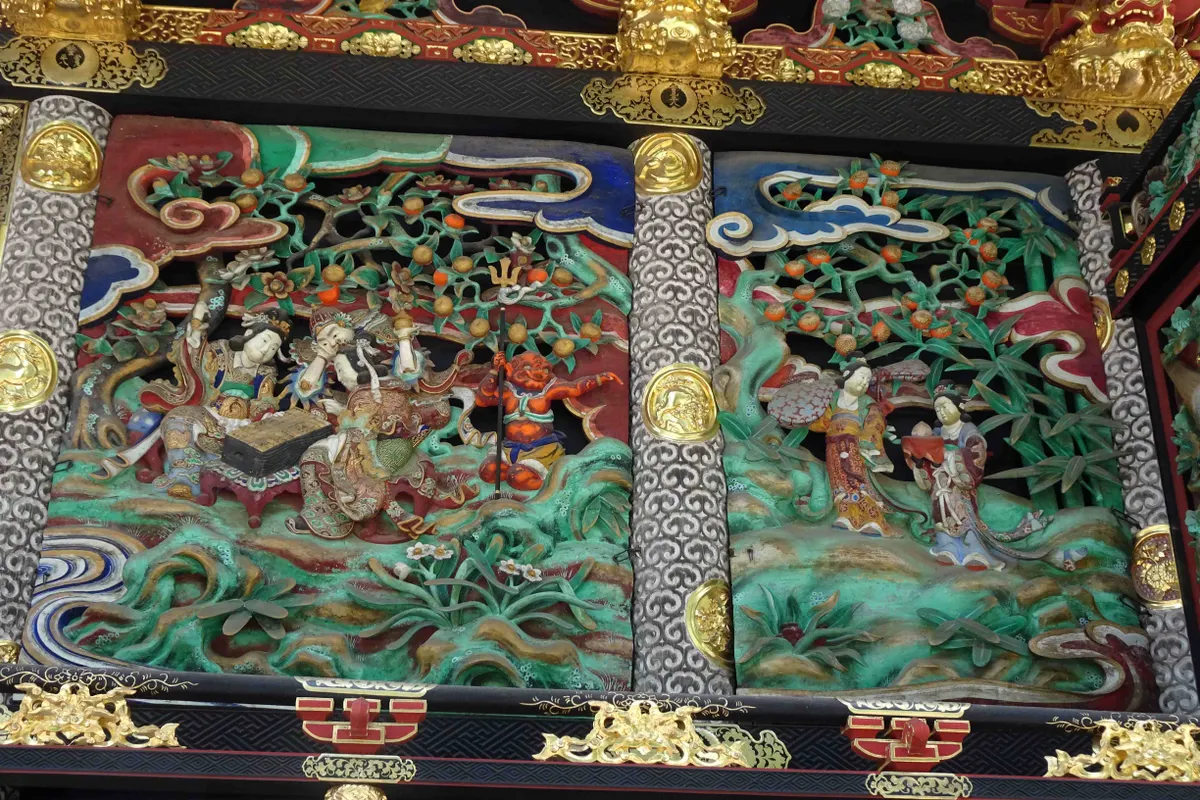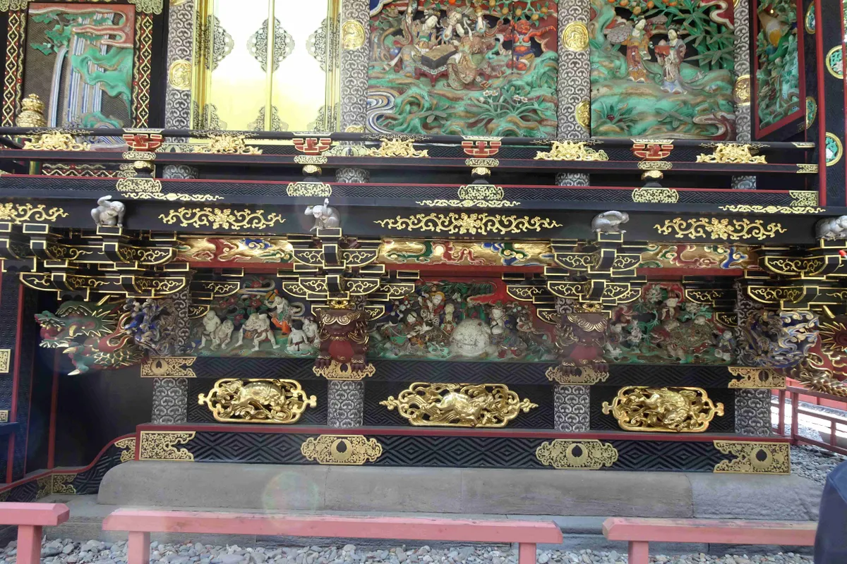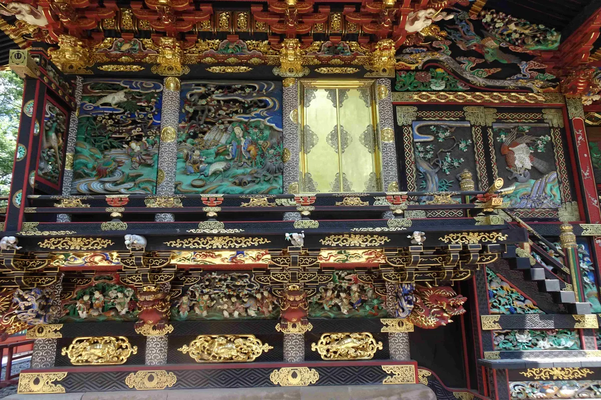軒下のこの彫刻は左、奥、右の3面でそれぞれ意味があります。
