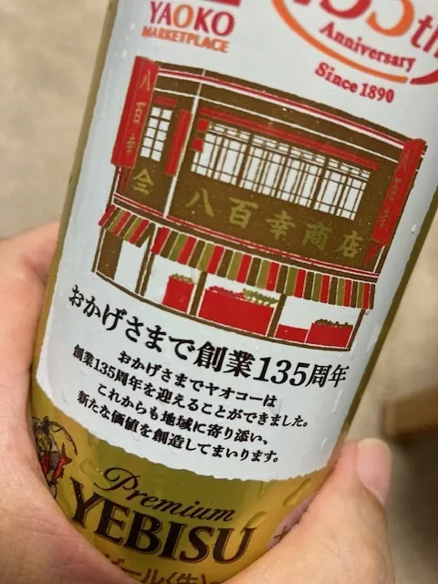 で、今日の晩ご飯に合わせたのは、金ヱビス(ヤオコーコラボ135周年缶)でした。ヤオコーすごい♫