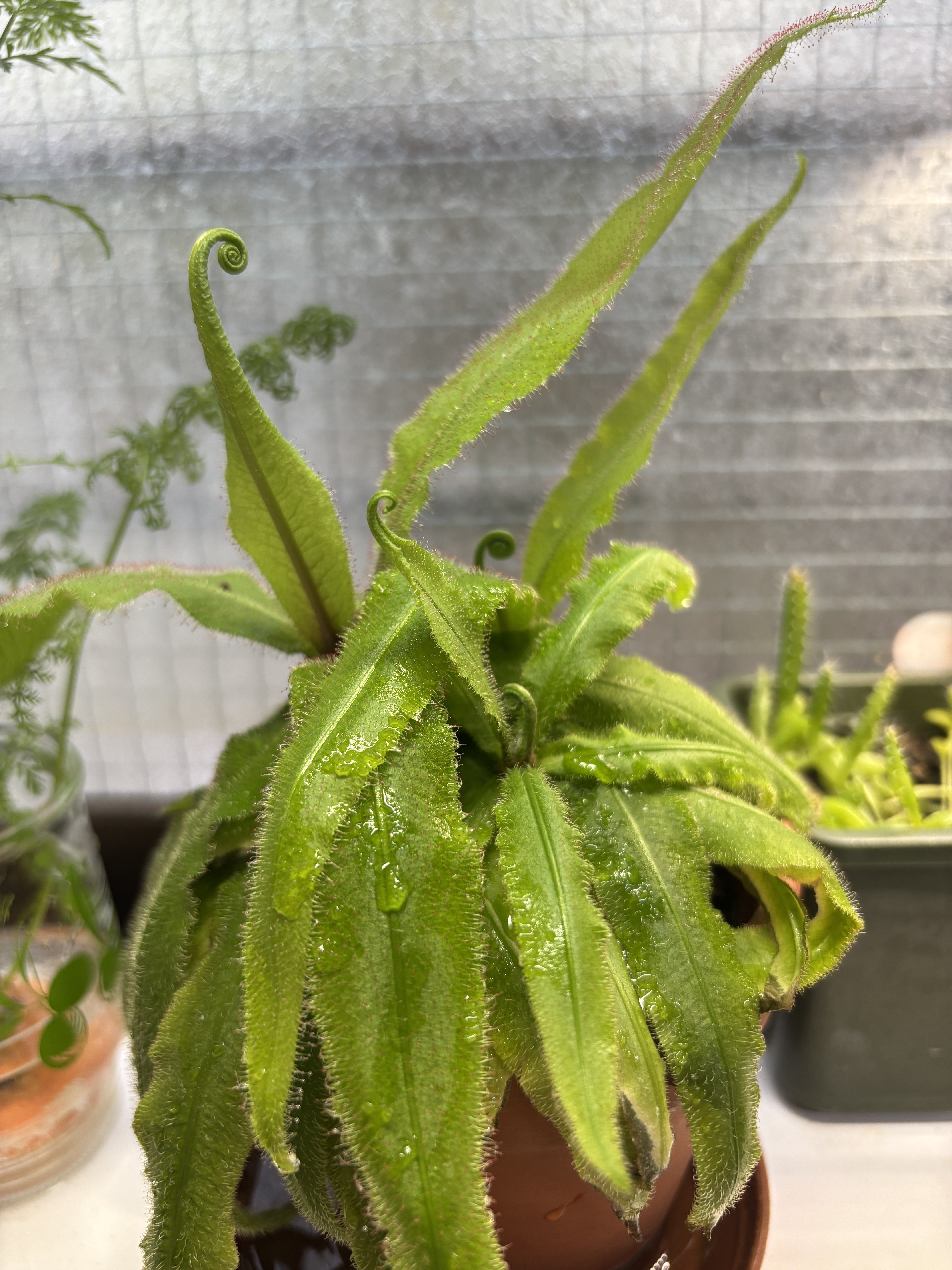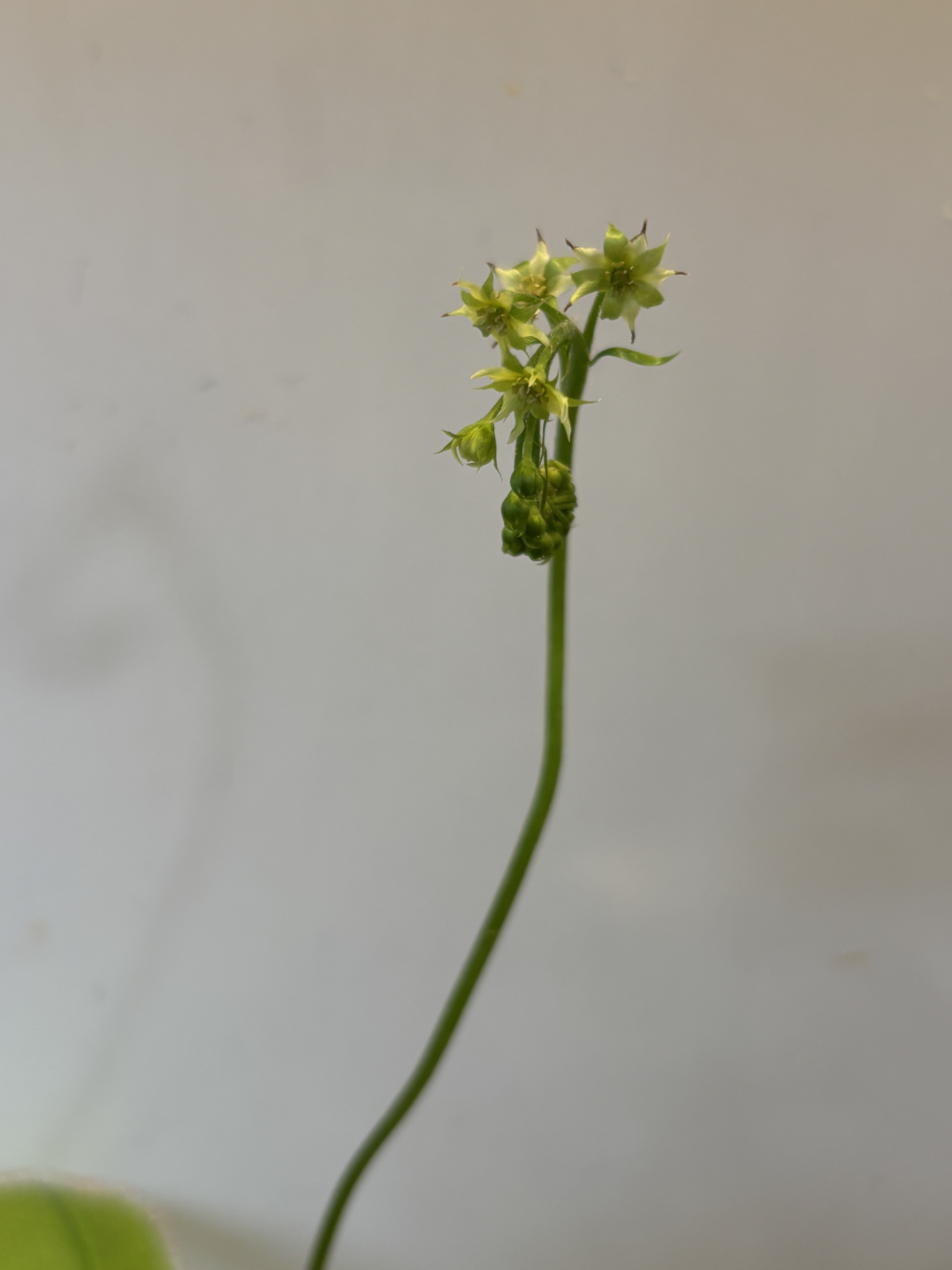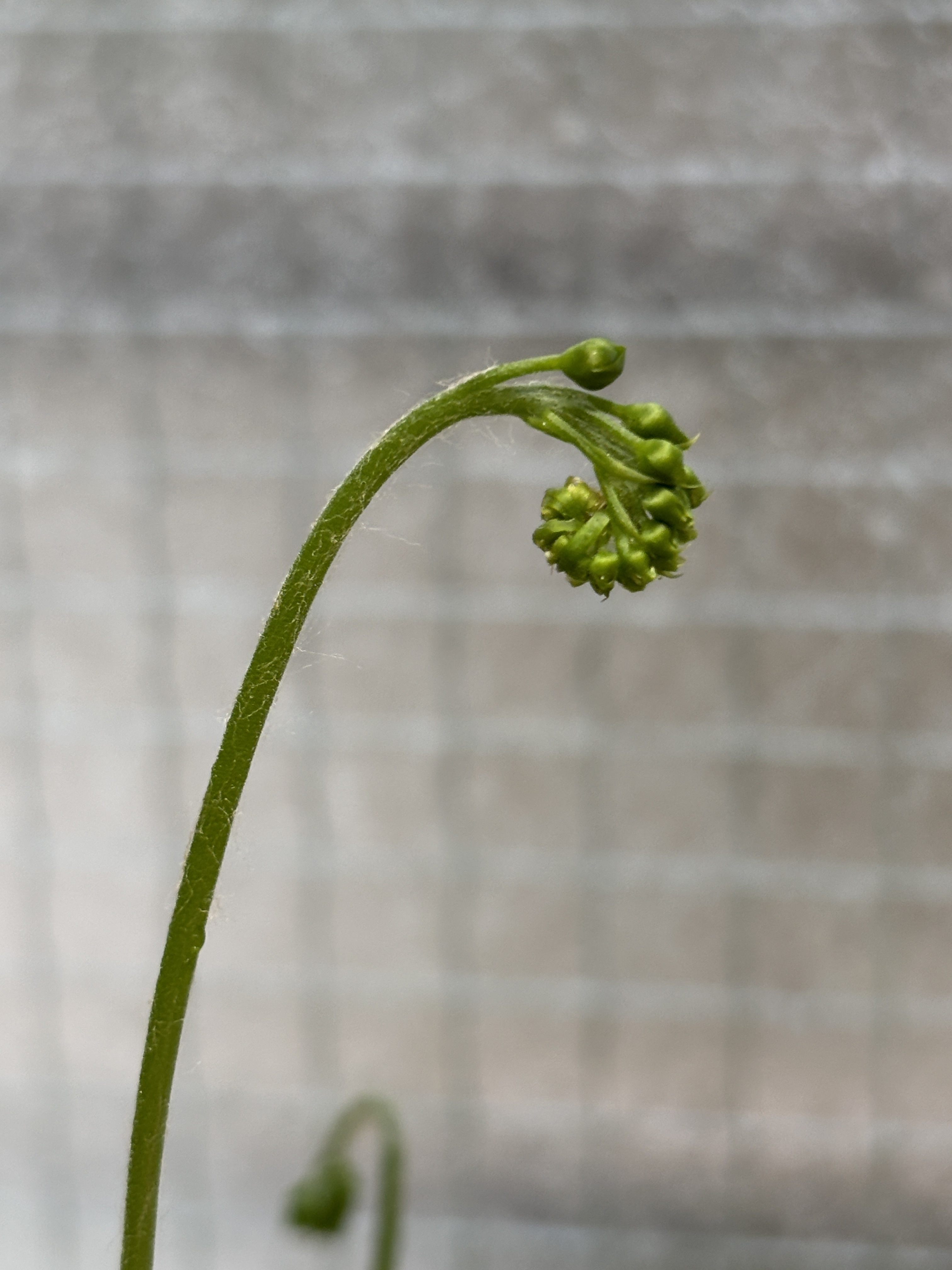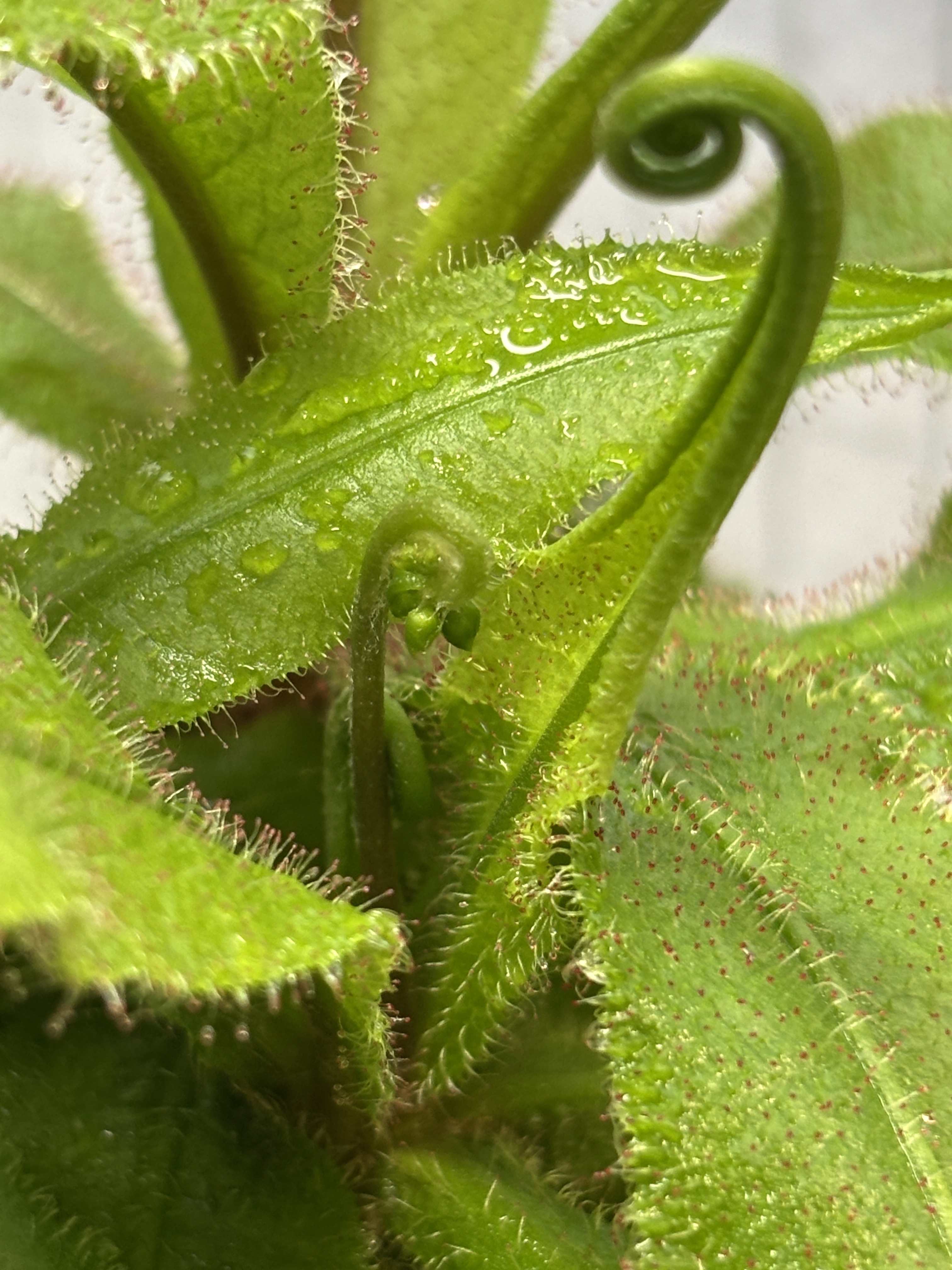 去年から台所で育てているモウセンゴケに花が付きました。