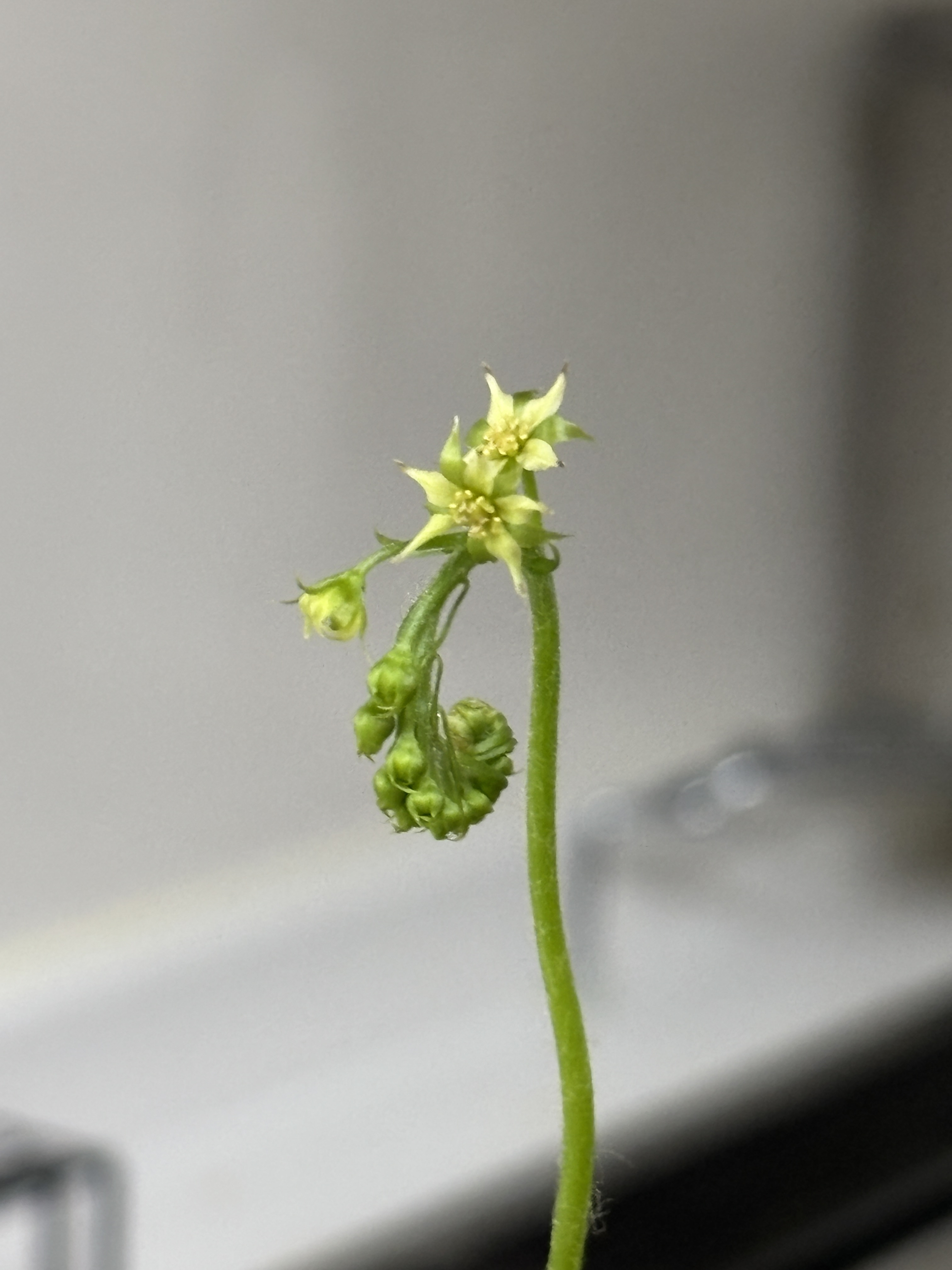色はまさかの黄色でした。お星さまのような、小さな小さなお花。ちゃんと全部咲くと良いなと思います。