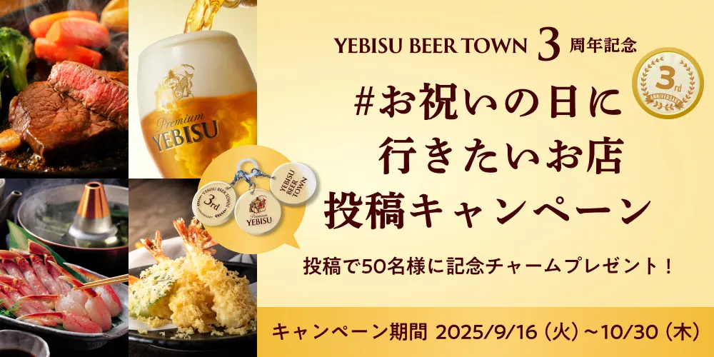 ヱビス提供店で3周年を祝おう!「#お祝いの日に行きたいお店」投稿キャンペーン