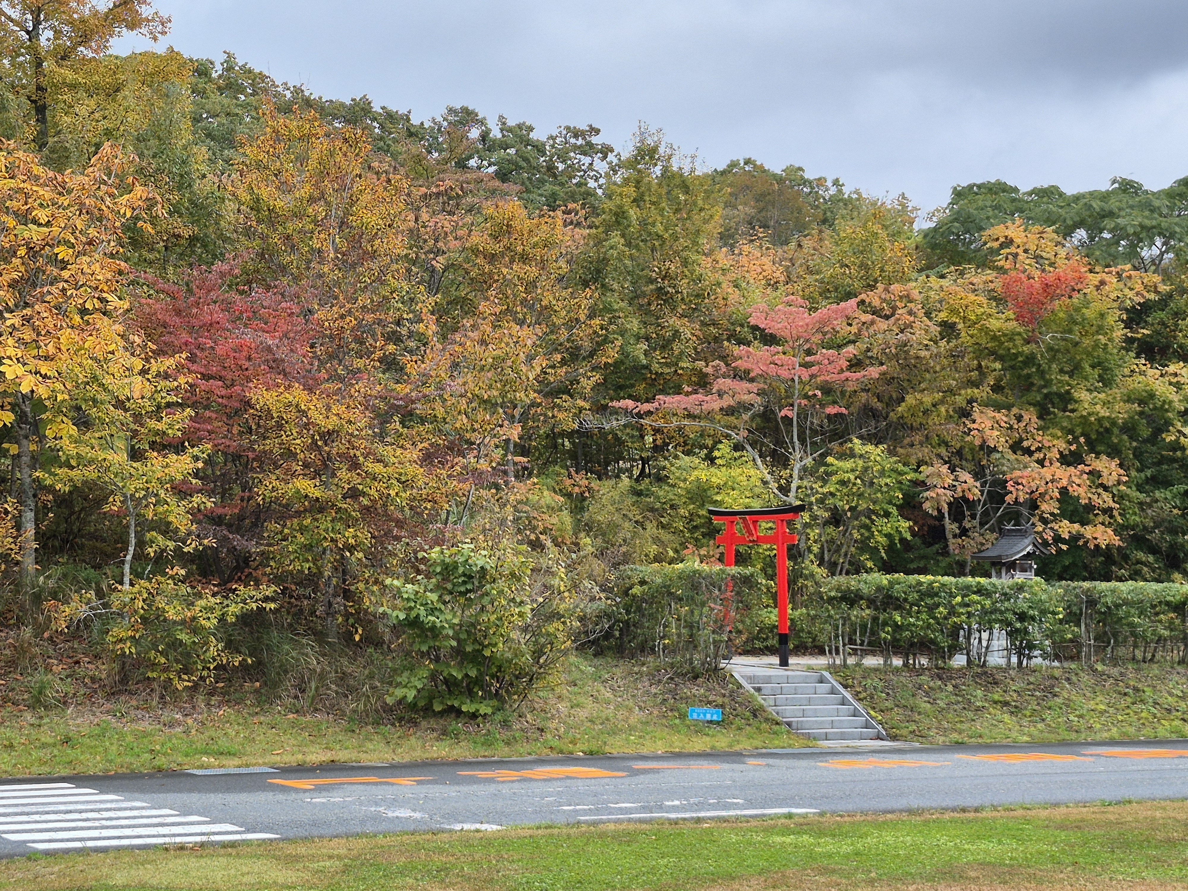 ↑↑↑⛩️⛩️⛩️天然水(奥大山)ブナの森工場の敷地内の鳥居。紅葉🍁の中の鳥居⛩️…映えています。