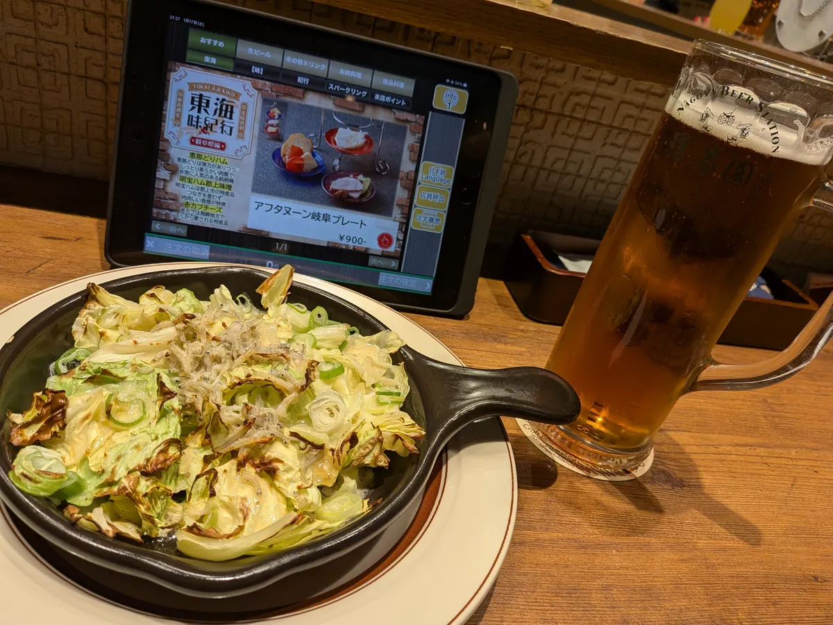 入る前に食べたけど小腹空いたので焼きキャベツの焦がしねぎソースを!最近この料理やめられん!😋