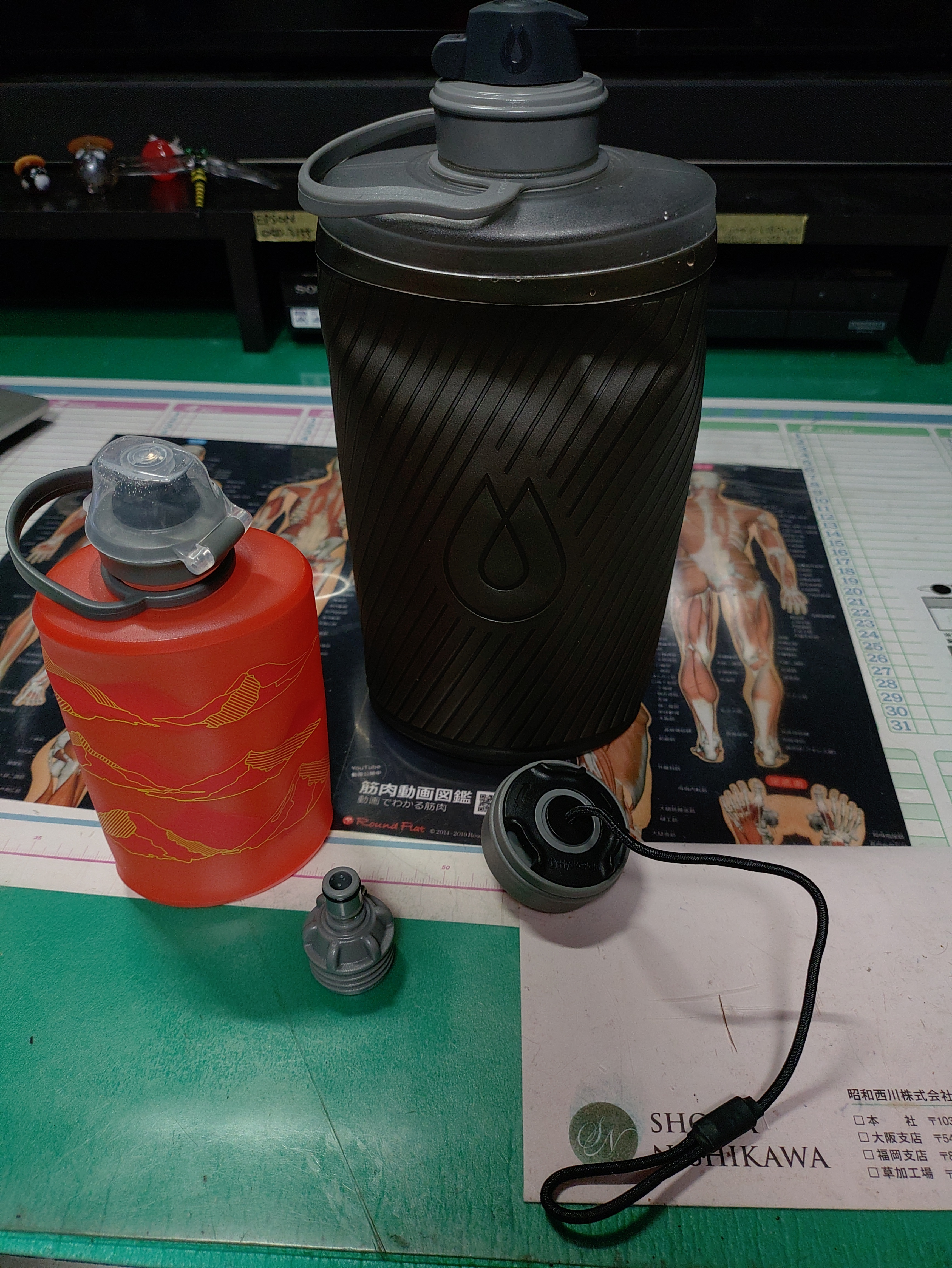奥のデカいのがHydraPakのフラックスボトル 1500ml