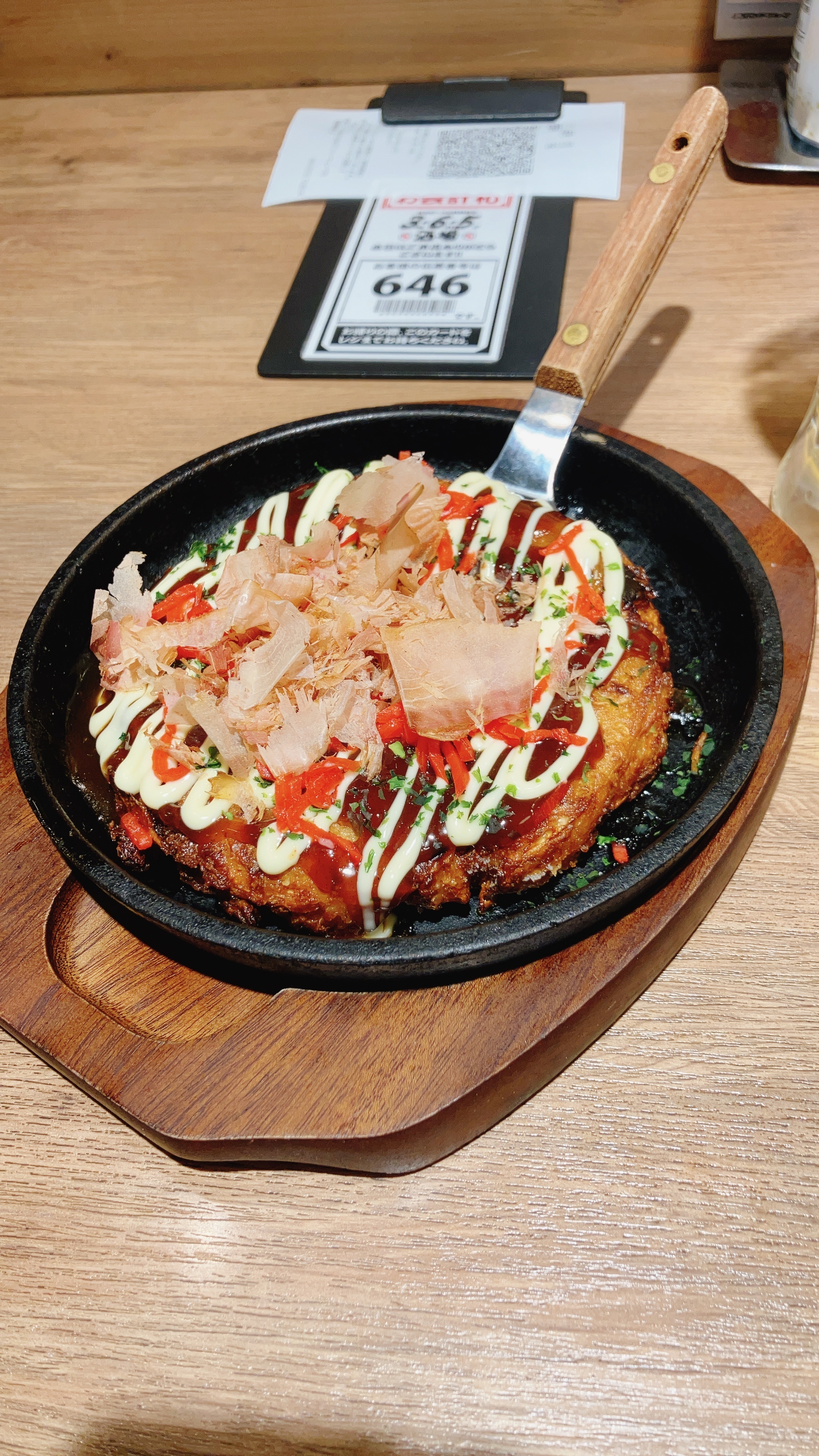 安定の新メニューお好み焼きプレーン¥548を迷わずオーダー。この味、ボリュームでこの料金はコスパ良すぎ!山芋感もハンパ無いく美味い!