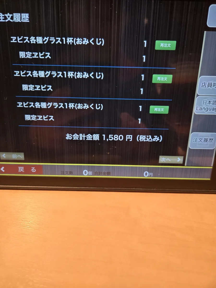 まだ15枚くらい残っていたヱビス祭り無料券消化活動。