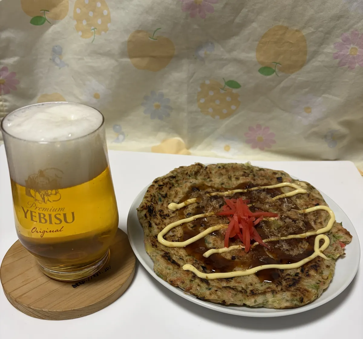 帰宅して冷蔵庫で冷やし家族が作ったお好み焼きに合わせて飲みました。