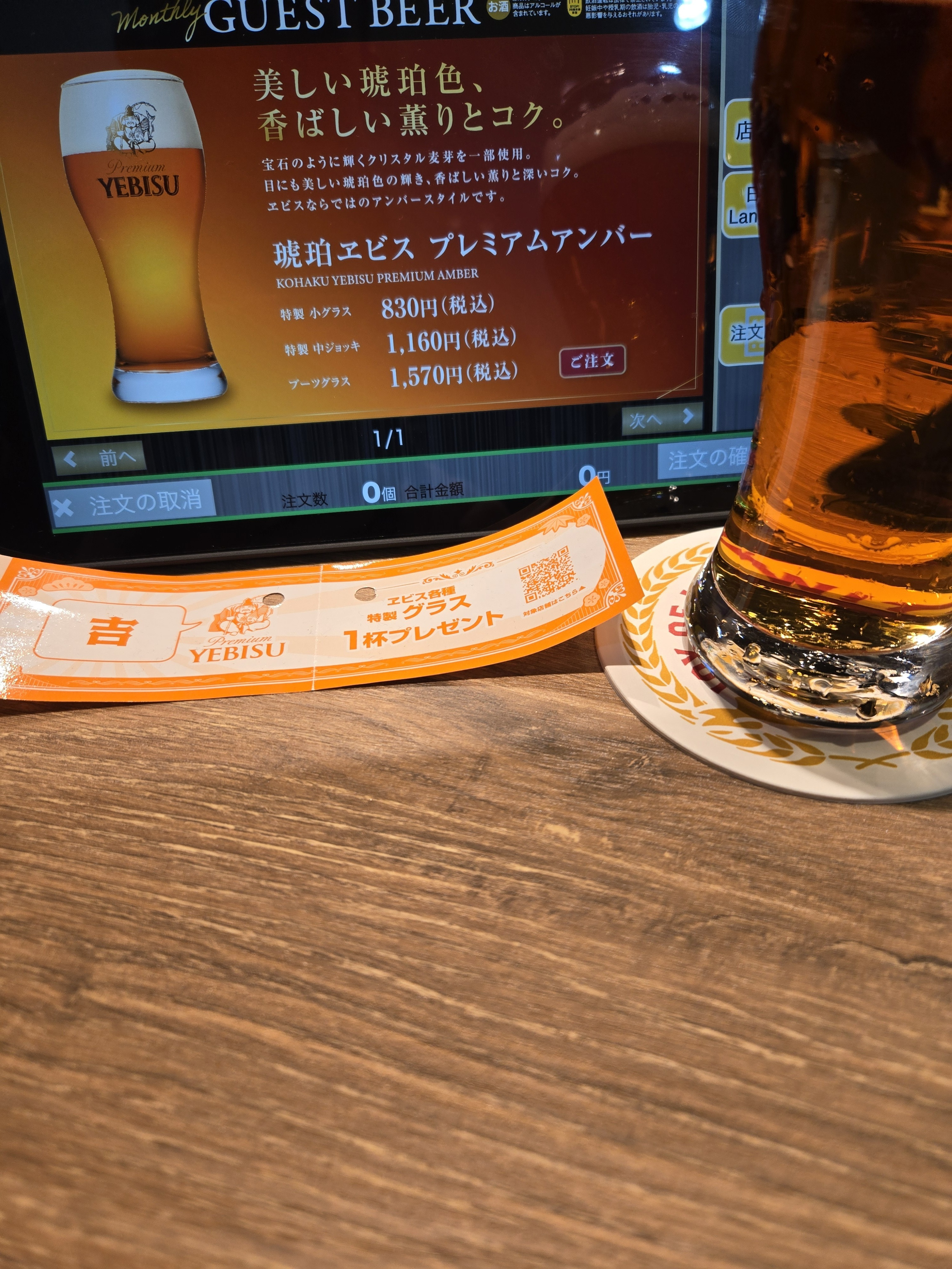 和奏2杯🍺🍺ヱビスバーアプリ半額券使用😊
