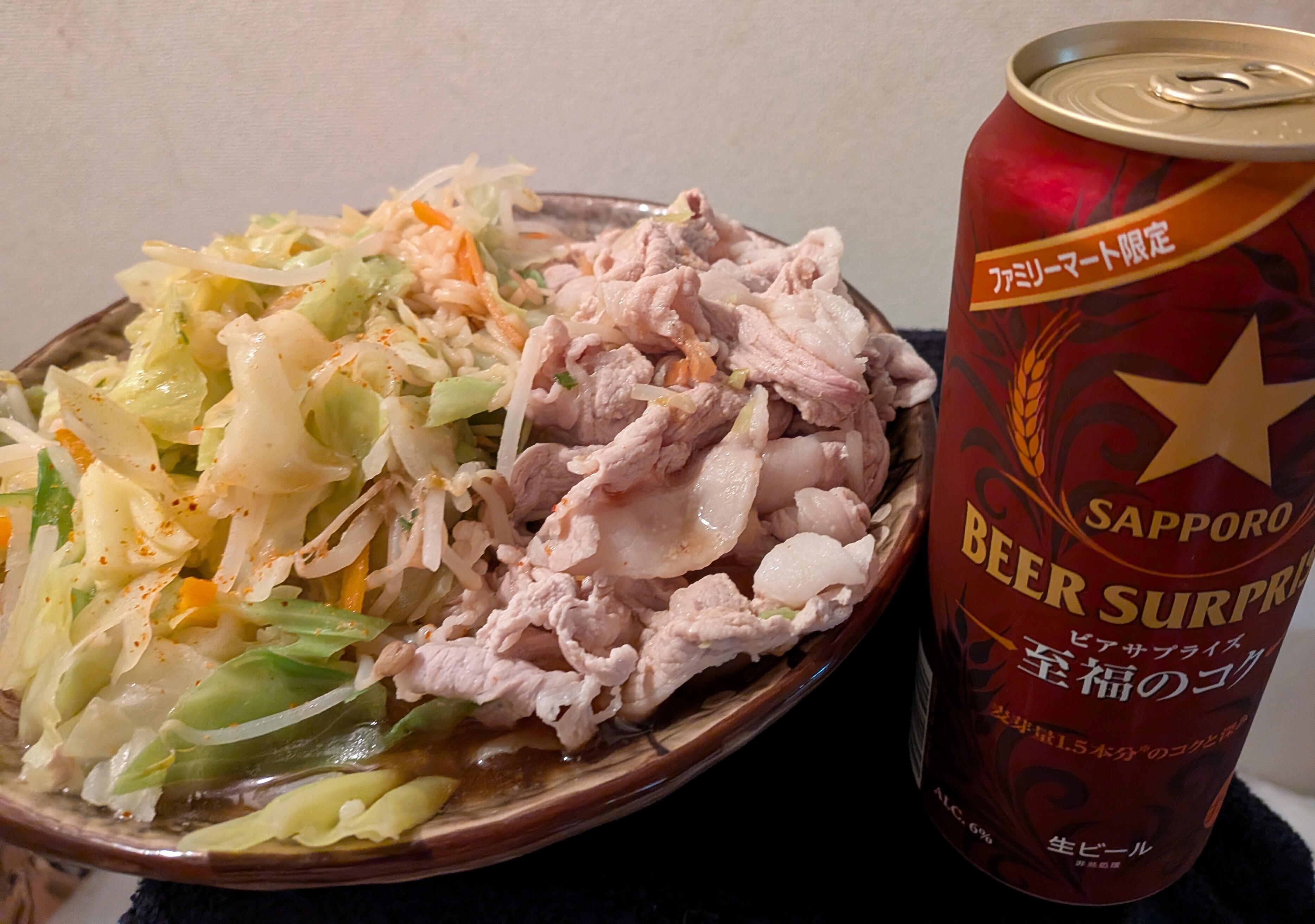 まずは3袋分の麺を茹で丼へ、その後豚肉をしゃぶしゃぶして麺の上へ!😁最後に麺を茹でた残り湯に野菜を入れ粉スープを溶かしドンと盛り付けました‼️パンパンです!🤭麺が3袋分入ってるのに麺が見えません!🤣🤣🤣