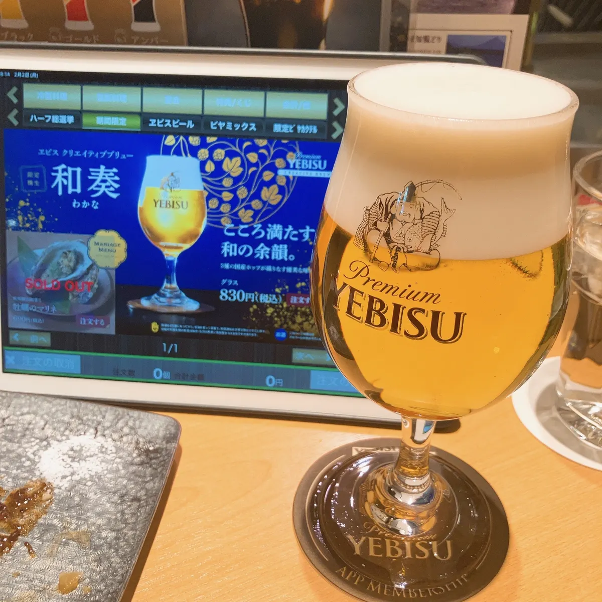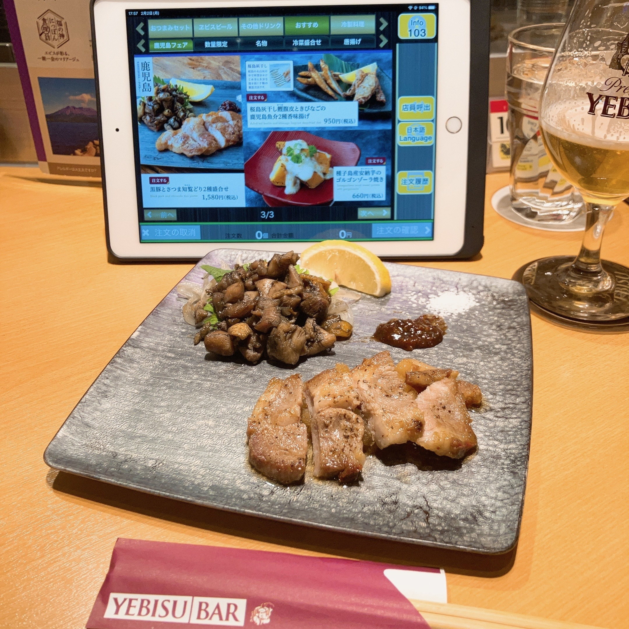 1月の月間Top10特典を使用し、黒豚とさつま知覧どり2種盛り合わせを頂きました。先月も大崎店で頂いたのですが、美味しかったのでリピートしちゃいました。ヱビスビールはお決まりの和奏から。ご馳走様でした。
