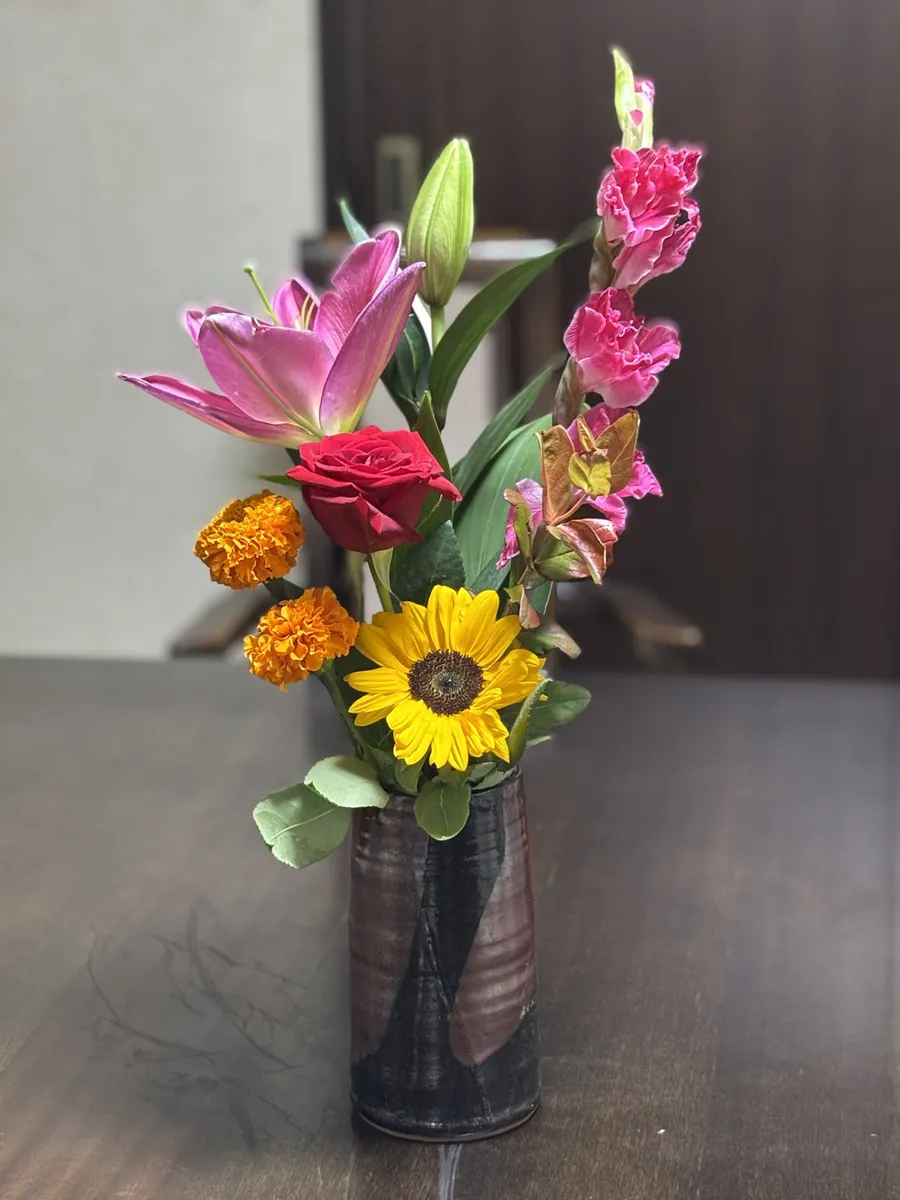 こちらは昨日同居の義父がとある会合で頂いてきた花たちです。
