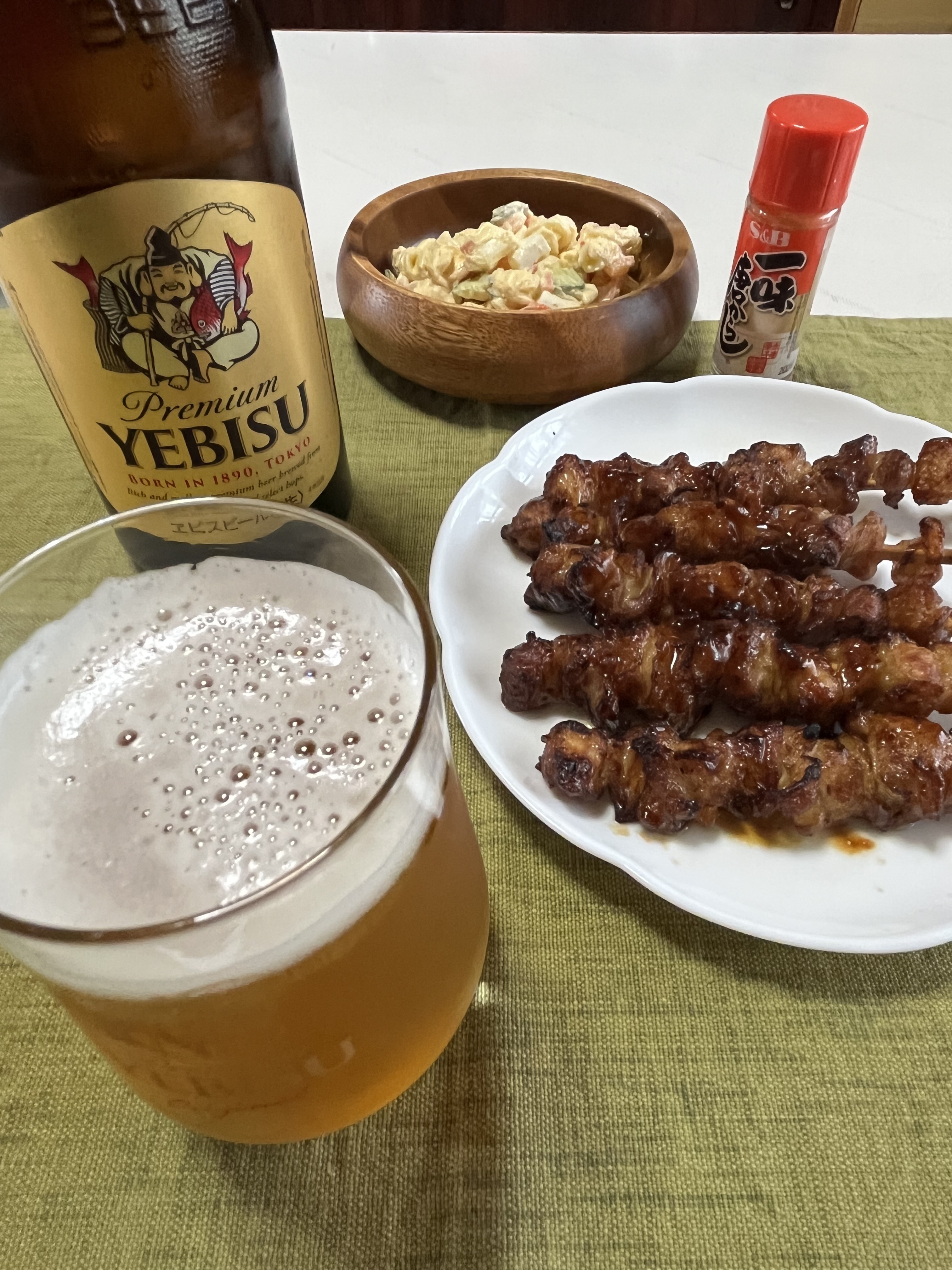 食卓の晩ごはん、ヱビスが進みそうですね🍻