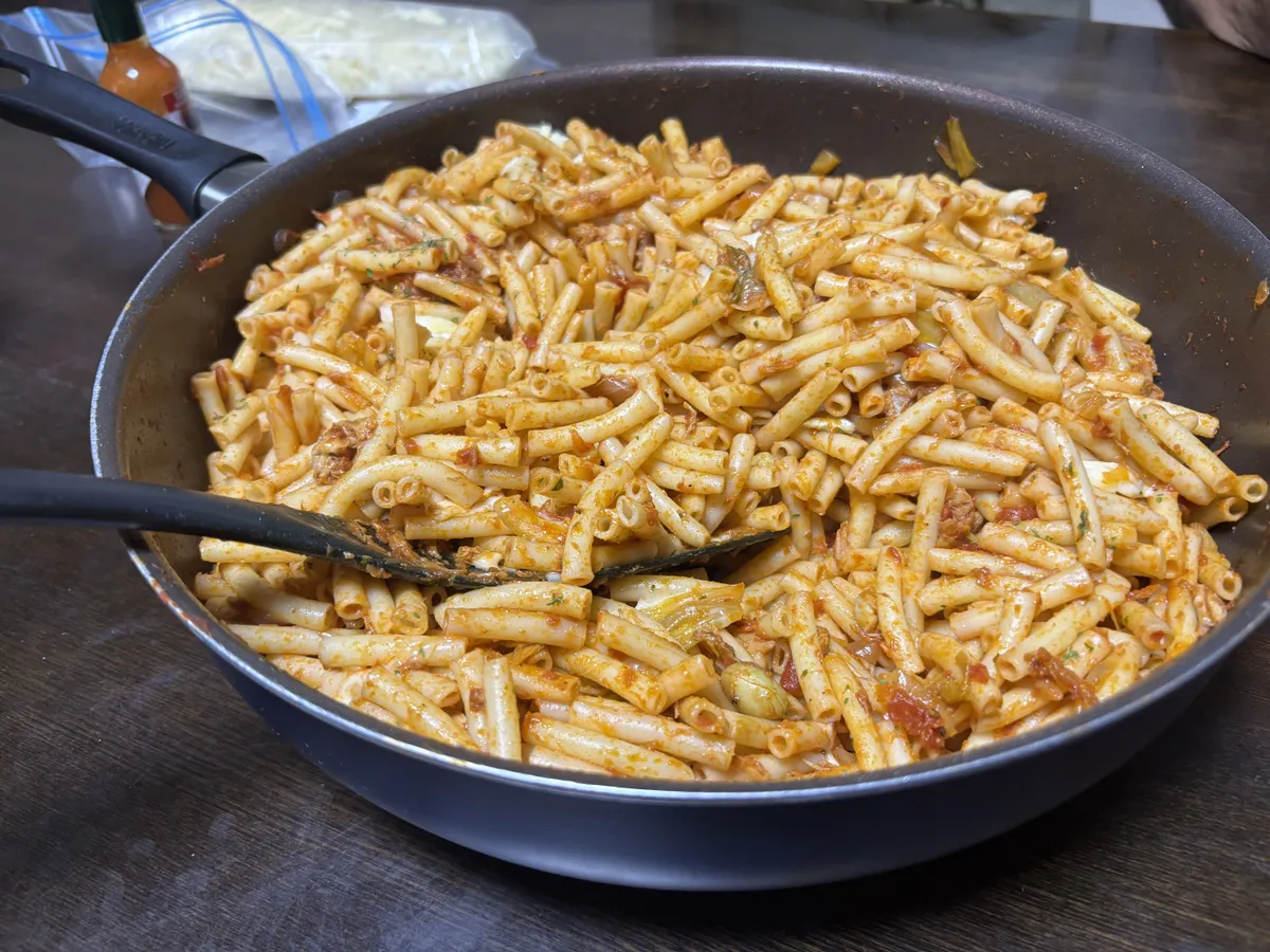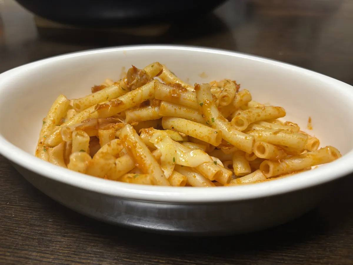 昨日は、一昨日の夜に作った鶏トマトシチューが残っていたので、それをアレンジして鶏トマトマカロニを作りました。