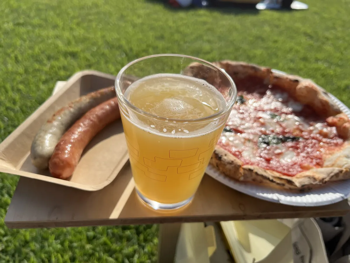 今回天気にも恵まれ青空の下、 開放的な気分で美味しい🍺と 地元飲食店の美味しい料理で お疲れ様ぁ〜🎶かんぱぁ〜い🍻🍻😋 (アイキャッチ画像はヤッホーブルーイングさんの無濾過有頂天エイリアンズ)