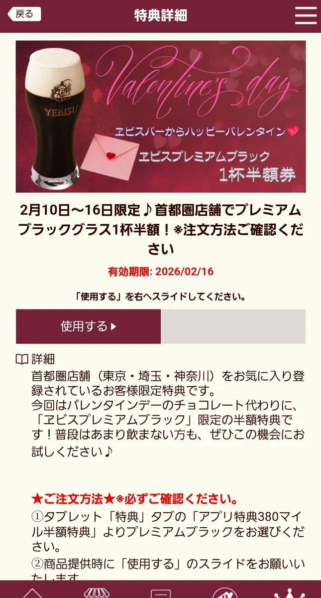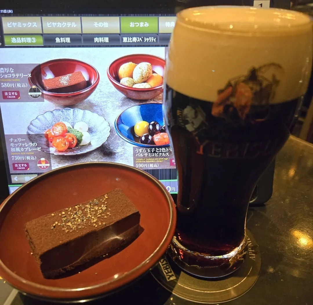 ヱビスブラック1杯🍺半額クーポン使用😊