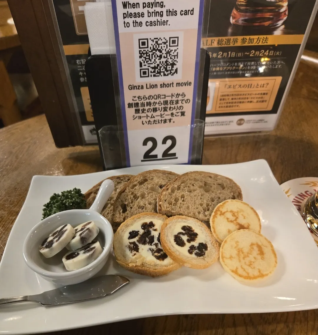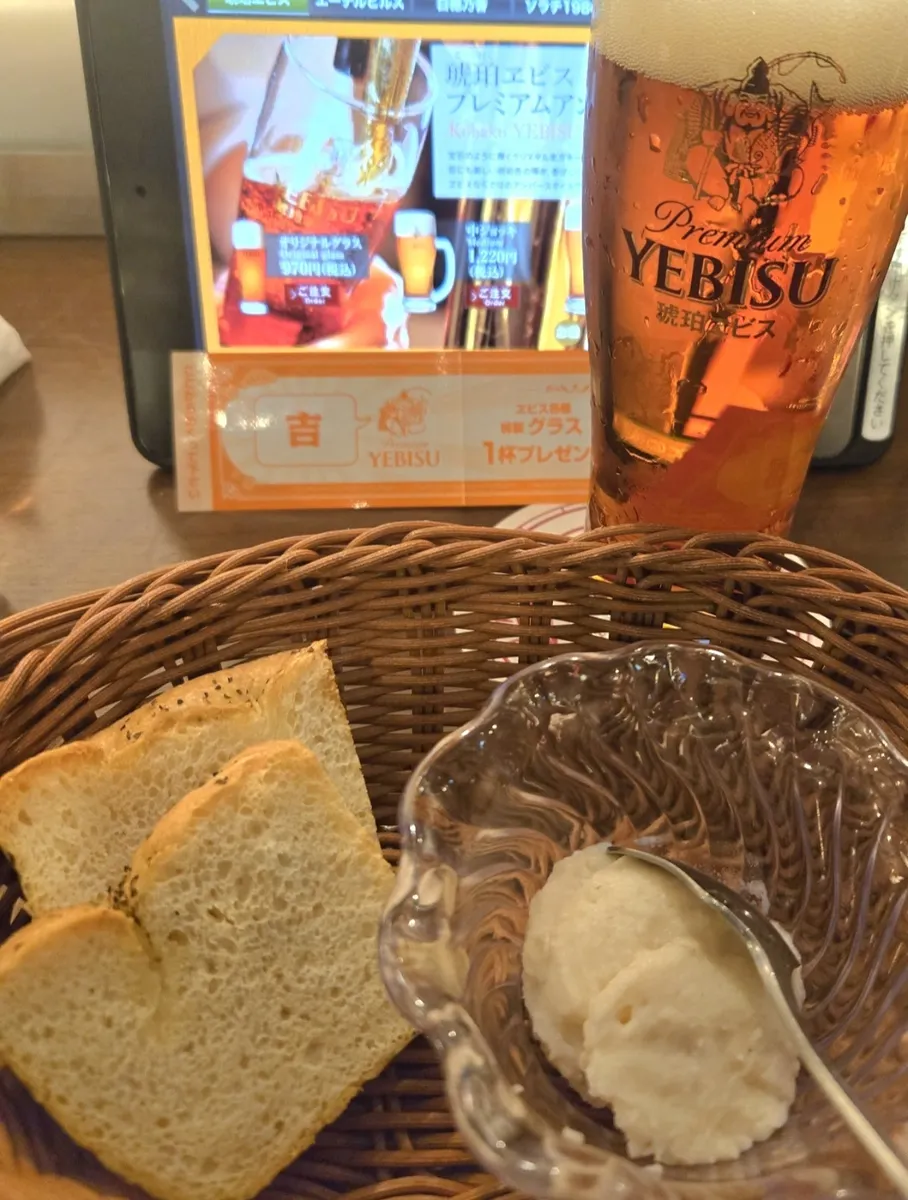 琥珀ヱビスはヱビス祭チャンスくじのグラス無料券を使用😊ここの琥珀ヱビスのグラスは、形状こそヱビスバーの琥珀ヱビスグラスと一緒ですが、ひとまわり大きくて、ヱビスバーのグラスは330mlですが、こちらは400mlです🍺ちなみに銀座ライオンではヱビスバーのヱビスビール等のグラスを使用していて、350mlです🍺なのでこちらで琥珀ヱビスのグラス価格は970円、ヱビス祭グラス無料券を使うならこちらのお店の琥珀ヱビスがオススメです。ただし17時以降だとお通し代440円かかるので、17時前に入店しましょう😅