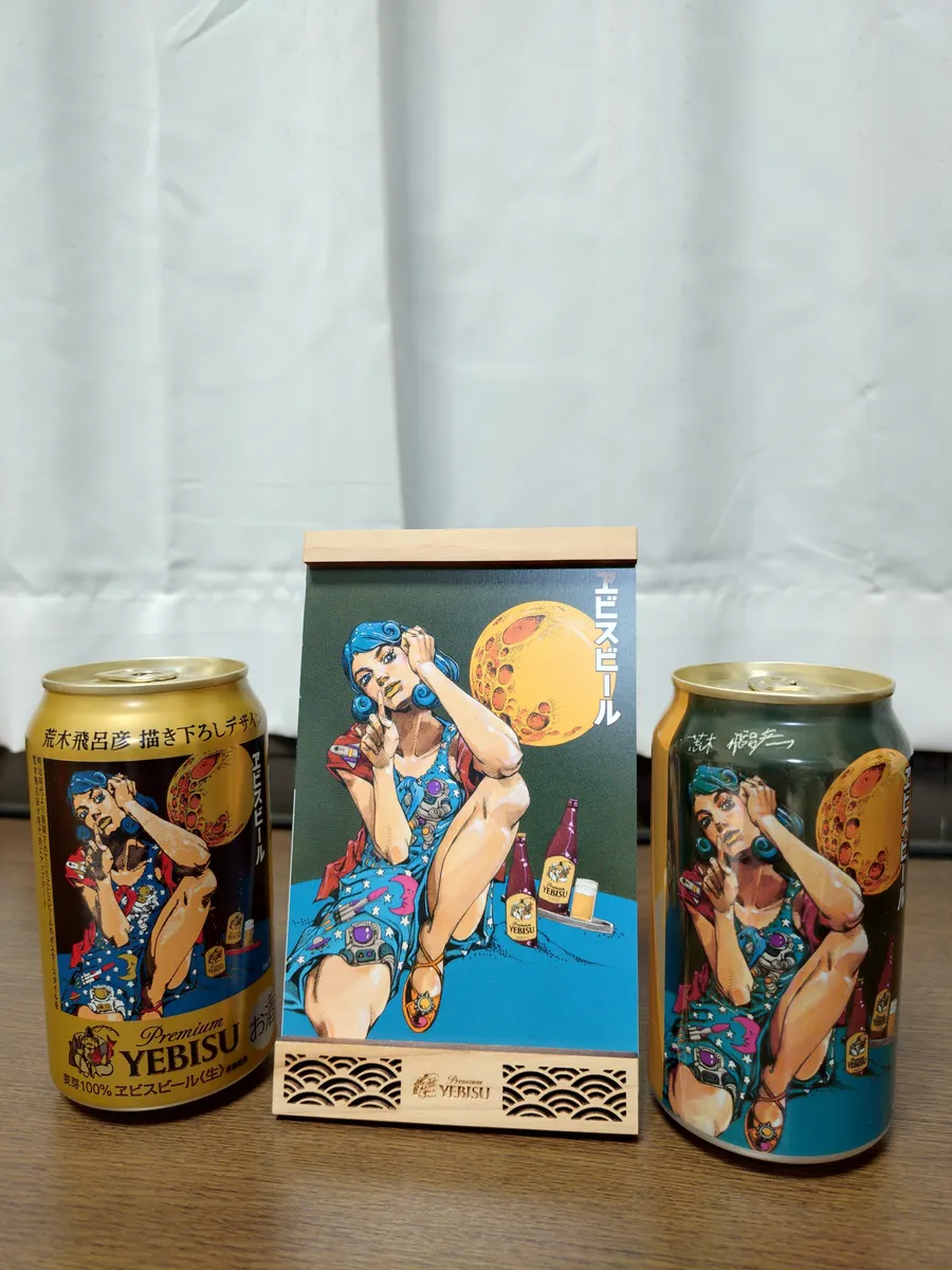 今夜も荒木飛呂彦描き下ろしデザイン缶を肴に、美味しいYEBISUを頂きます。