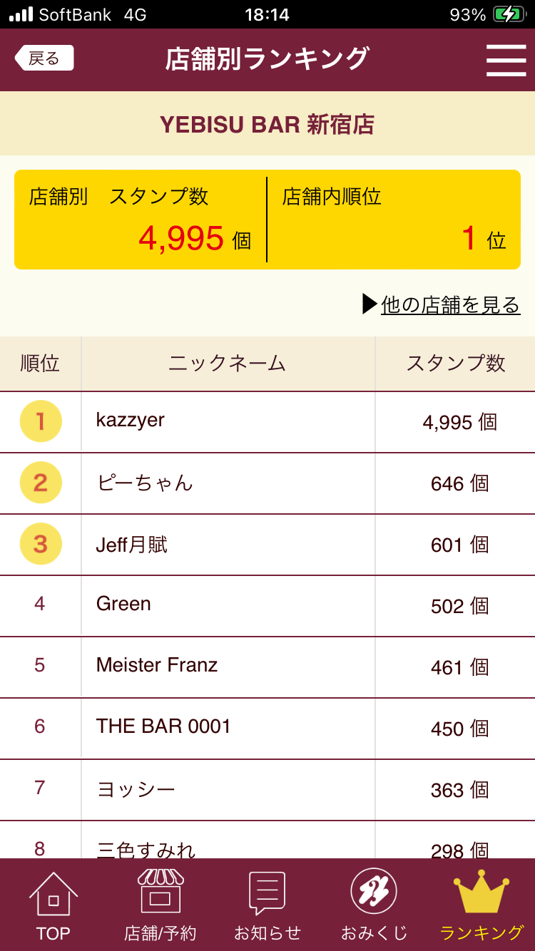 トップ > ヱビスフォト > YEBISU BAR > ヱビバ新宿店5,000御朱印ヤー‼️🫡🍺 kazzyer 2025/11/07 18:23 ヱビバ新宿店5,000御朱印ヤー‼️🫡🍺 個人成績はリアルタイムで分かりますが、現アプリは真夜中のバッチ処理(3:00〜4:00)でランキングが更新されるため未だ新宿店は昨日の4,955御朱印のままです。 しかし履歴の通り5杯頂きヱビバ新宿店の御朱印(スタンプ)5,000に到達ヤー‼️🫡 いいね 共有する 共有する X facebook LINE リンクをコピー コメントする 3 件の返信 (新着順) ミュートしたユーザーの投稿です。 投稿を表示 ヱビス狂 2025/11/09 10:37 🎊5,000到達ヤー🎊 ただの通過点🤣 いいね 返信する ミュートしたユーザーの投稿です。 投稿を表示 やっとこさ~ 2025/11/07 20:22 kazzyerさん、 おめでとうございます🥰✨🍻 やっぱりお祝い行くしかなかったですね🤣 いいね 返信する ミュートしたユーザーの投稿です。 投稿を表示 kazzyer 2025/11/08 05:13 ヤー‼️🤣🍺 いいね 返信する ミュートしたユーザーの投稿です。 投稿を表示 rainbow🌈 2025/11/07 19:06 ㊗️新宿店5,000御朱印✨ ヤー‼️🤣🍺 いいね 返信する ミュートしたユーザーの投稿です。 投稿を表示 kazzyer 2025/11/08 05:13 ヤー‼️🤣🍺 いいね 返信する